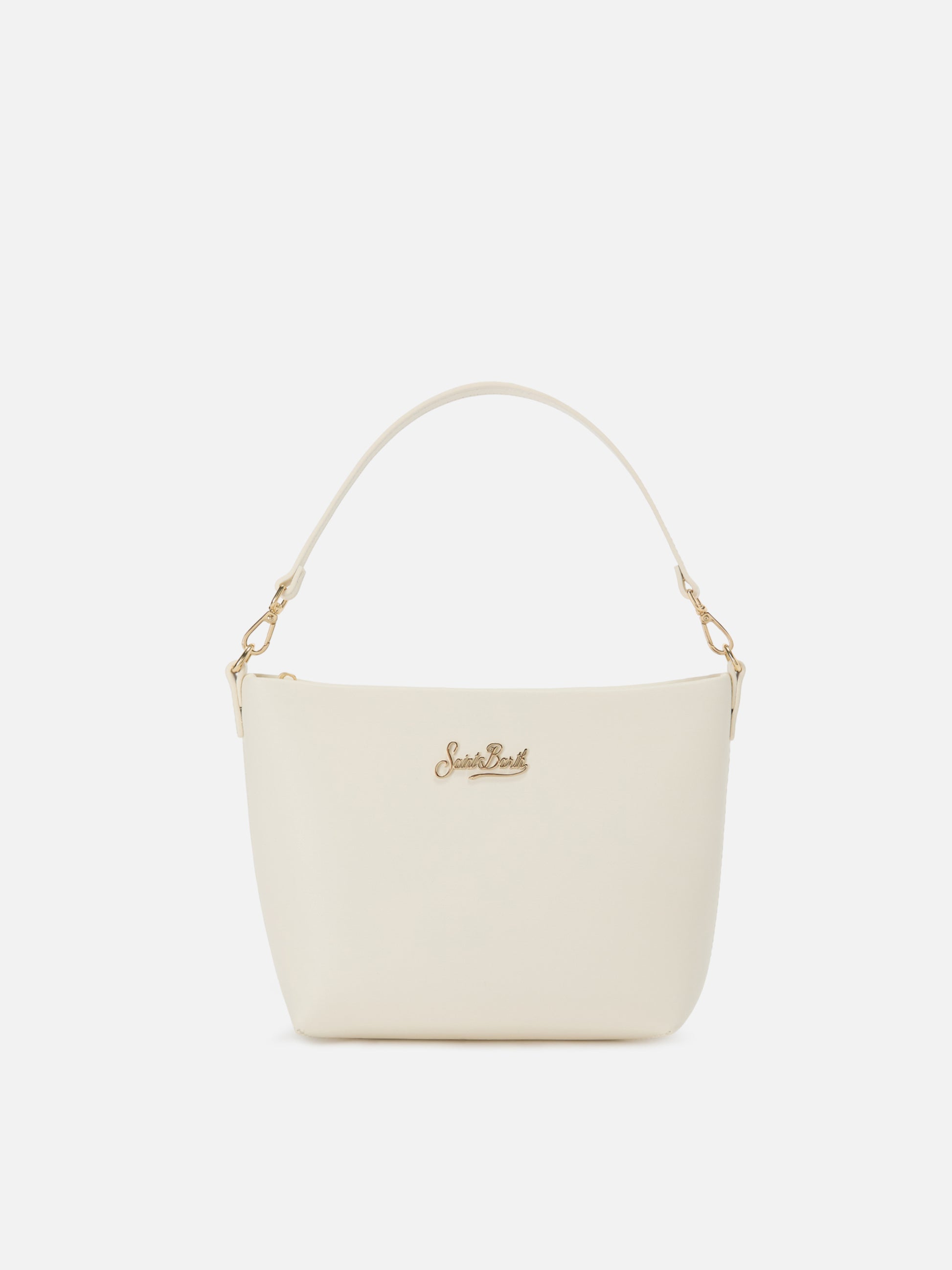 Aline bag in white smooth leather with metal logo plaque