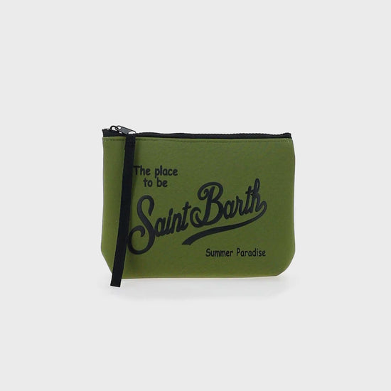Aline – Pochette aus Scuba-Material in Militärgrün