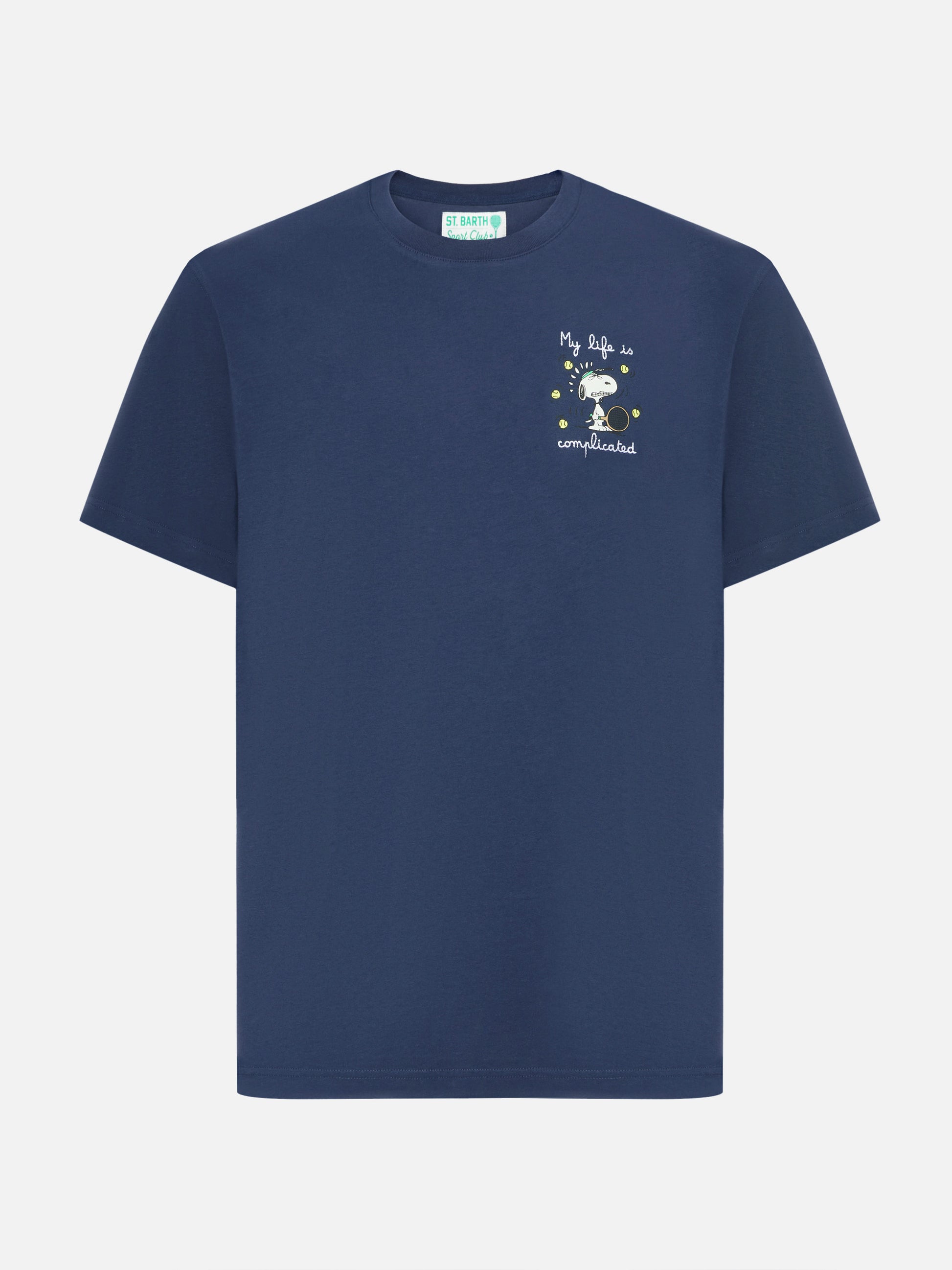 Arnott Baumwoll-T-Shirt in Blau mit Snoopy-Stickerei „Mein Leben ist kompliziert“ | PEANUTS SONDEREDITION