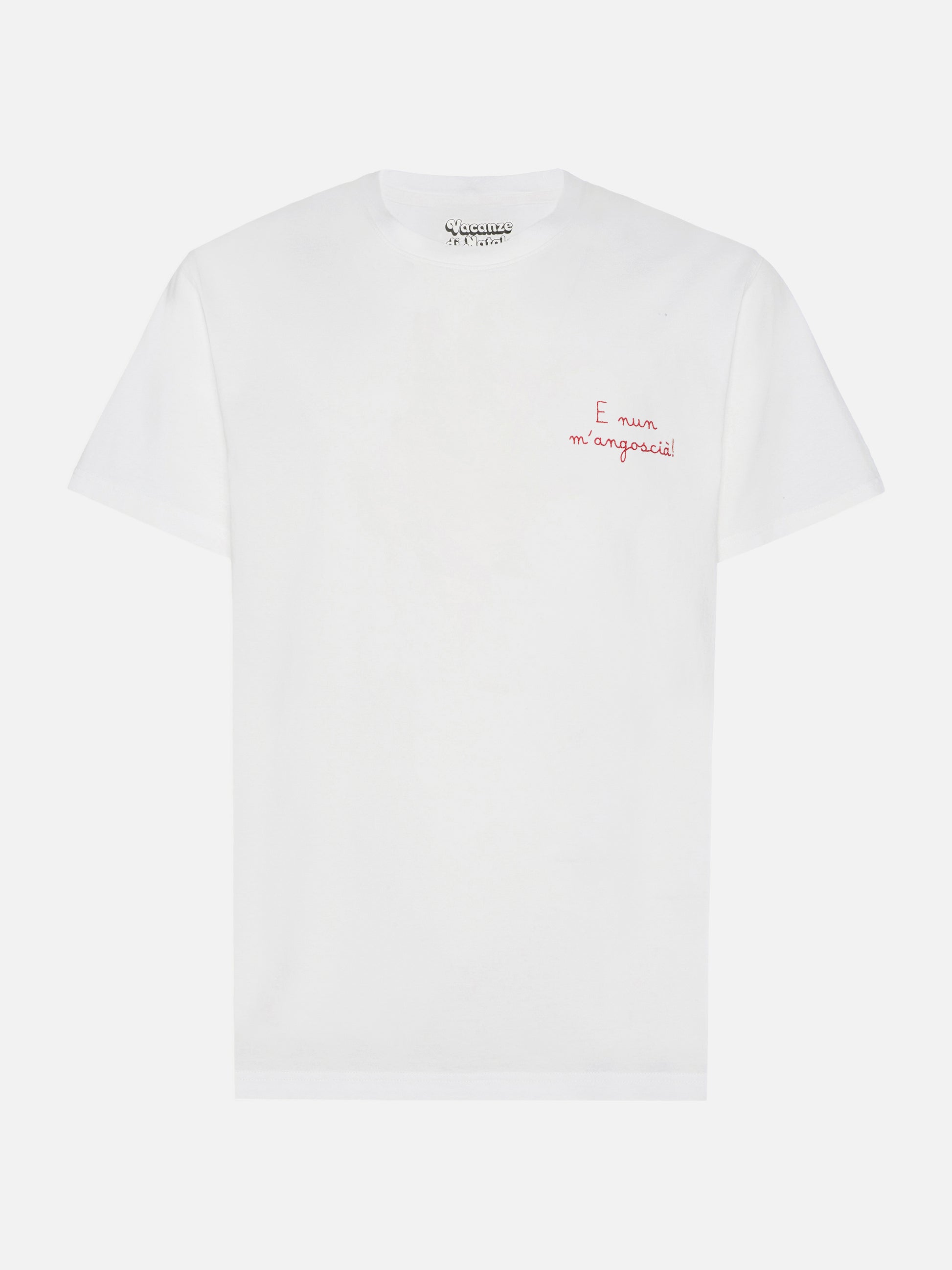 Arnott Warm Winter-Baumwoll-T-Shirt in Weiß mit E nun m'angoscià-Stickerei | VACANZE DI NATALE SPECIAL EDITION