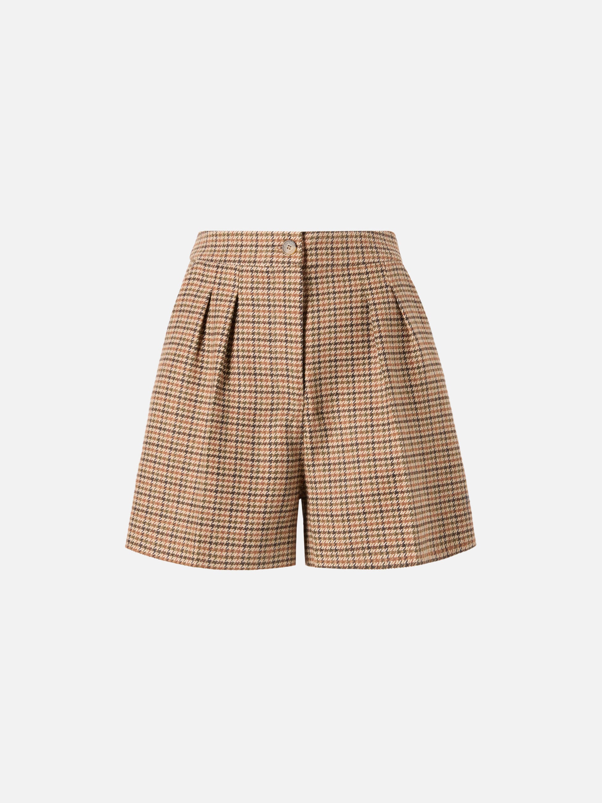 Aya-Shorts aus Hahnentrittmuster mit doppelten Falten