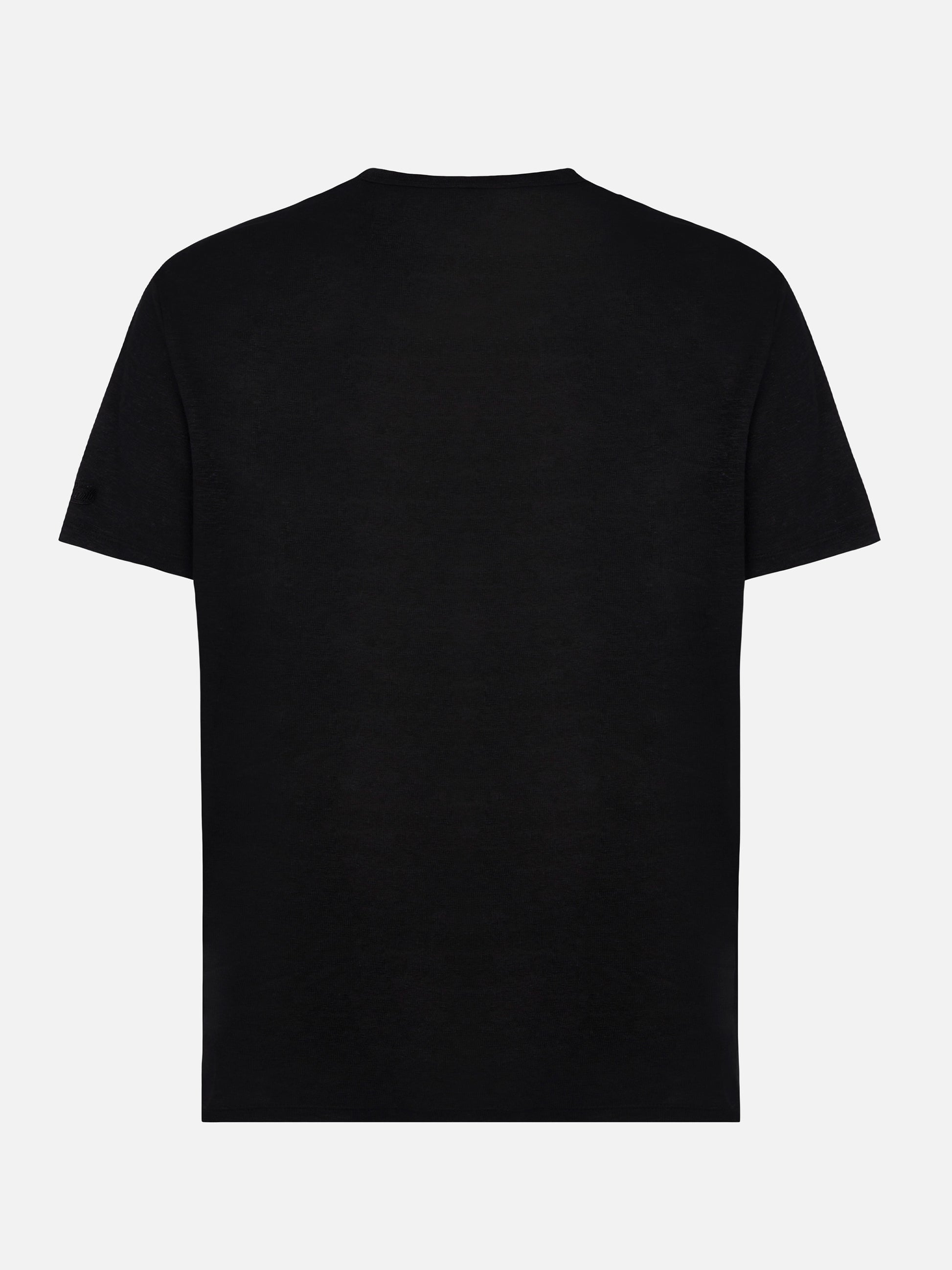 Herren-T-Shirt aus Leinenjersey mit Tasche Schwarz, einfarbig Exklusive MC2 Saint Barth Logo-Stickerei auf dem Ärmel Rundhalsausschnitt Kurze Ärmel Normale Passform Größe L hat eine Brustweite von 54,5 cm (vorne und hinten) und variiert bei jeder Größe um 2,5 cm; Schulterbreite von 45 cm und variiert bei jeder Größe um 2 cm; Länge von 71 cm und variiert bei jeder Größe um 2 cm Bitte beachten Sie, dass alle angegebenen Maße ungefähre Angaben sind und aufgrund manueller Messung eine Toleranz von 1-2 cm aufweisen. Dieser Toleranzbereich ist normal und zu erwarten. Das Model ist 185 cm groß und trägt Größe L Zusammensetzung 100% Leinen