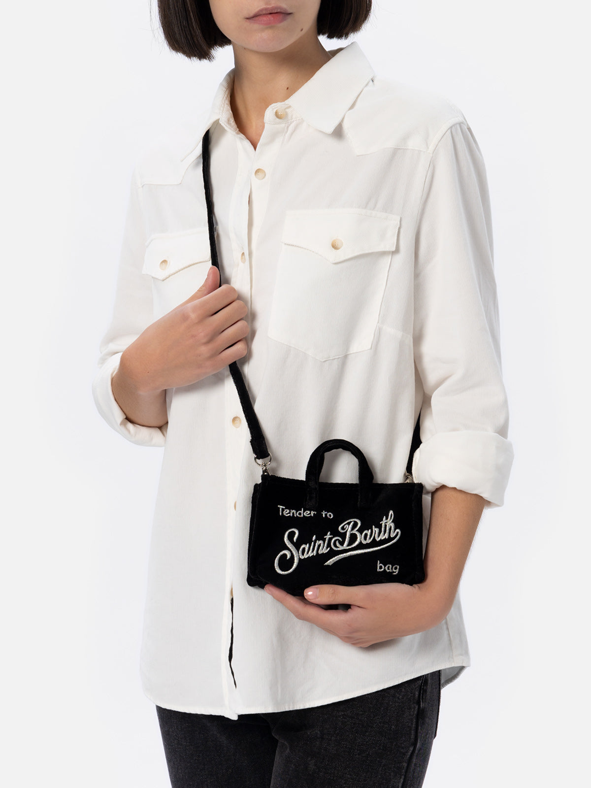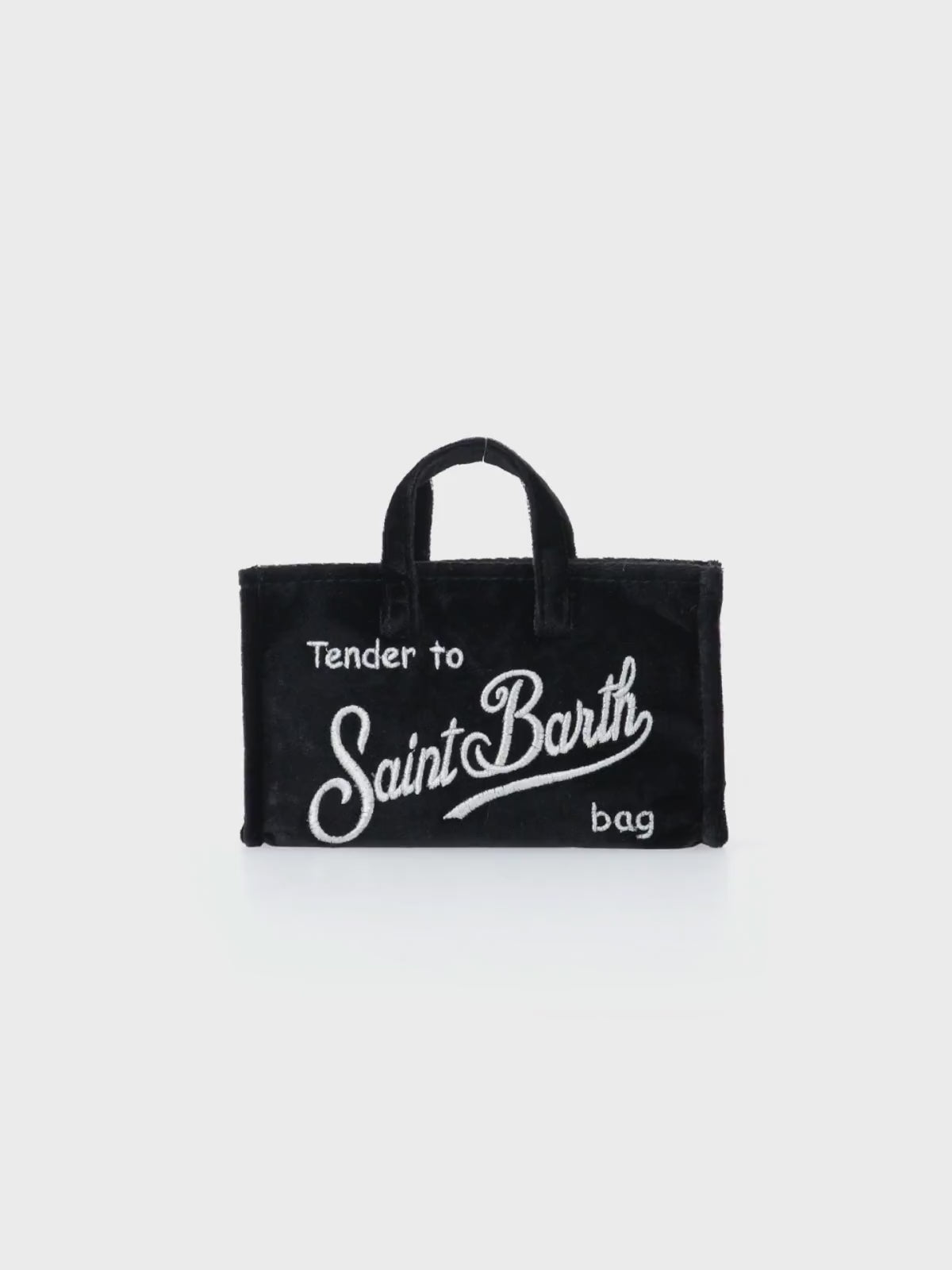 Schwarze Telefontasche aus Samt mit Saint Barth-Logostickerei