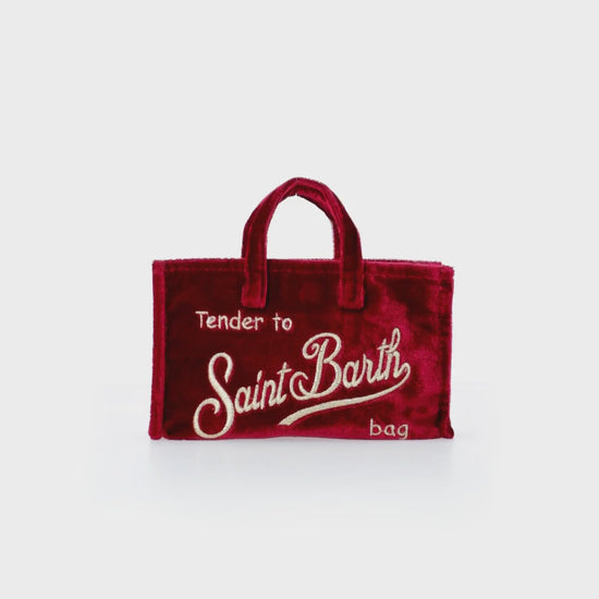 Burgunderfarbene Telefontasche aus Samt mit Saint Barth-Logostickerei