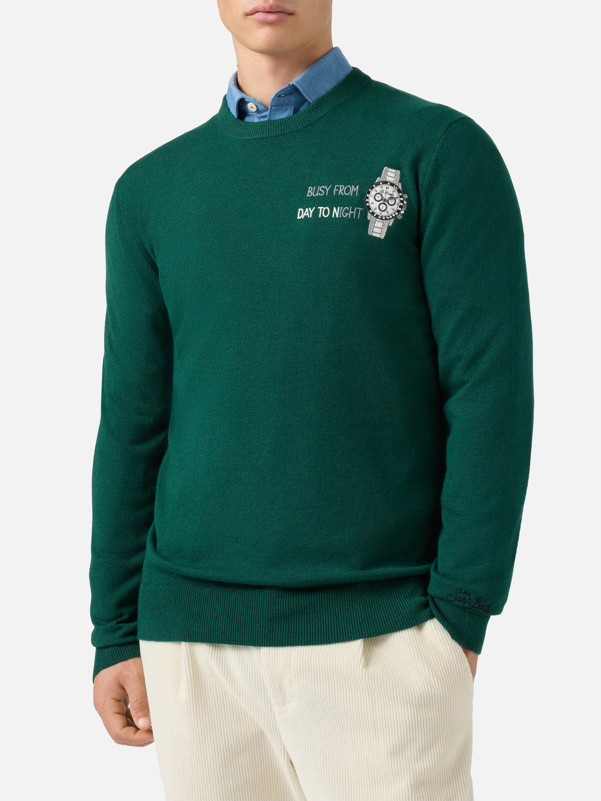 Rundhalspullover Heron Light mit Stickerei „Vom Tag zum Abend unterwegs“