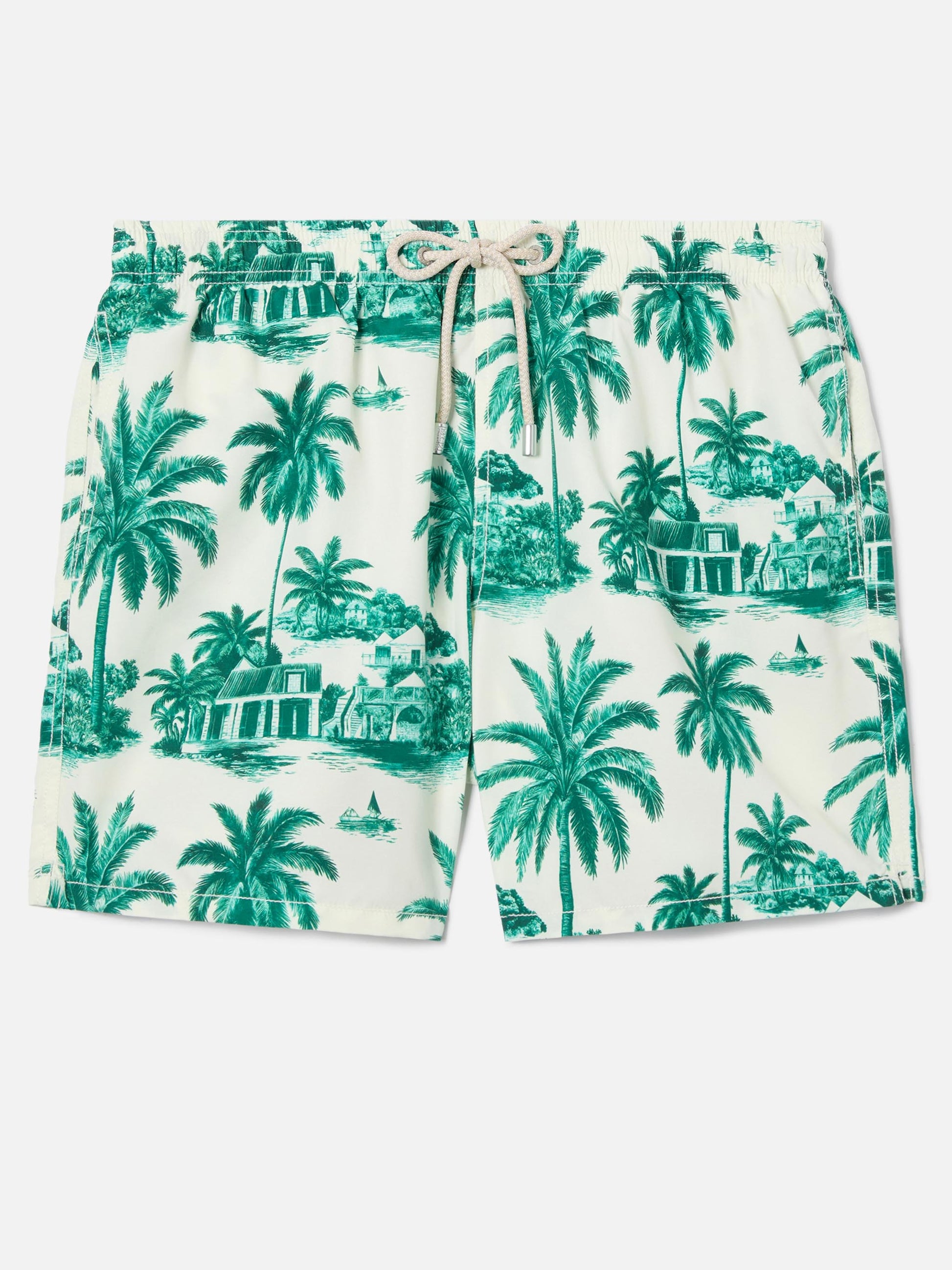 Gustavia swim shorts with green toile de jouy print | Special Edition