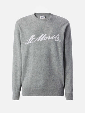 Heron Light sweater in grey 100% CASHMERE with St. Moritz intarsia | ST. MORITZ TOP OF THE WORLD