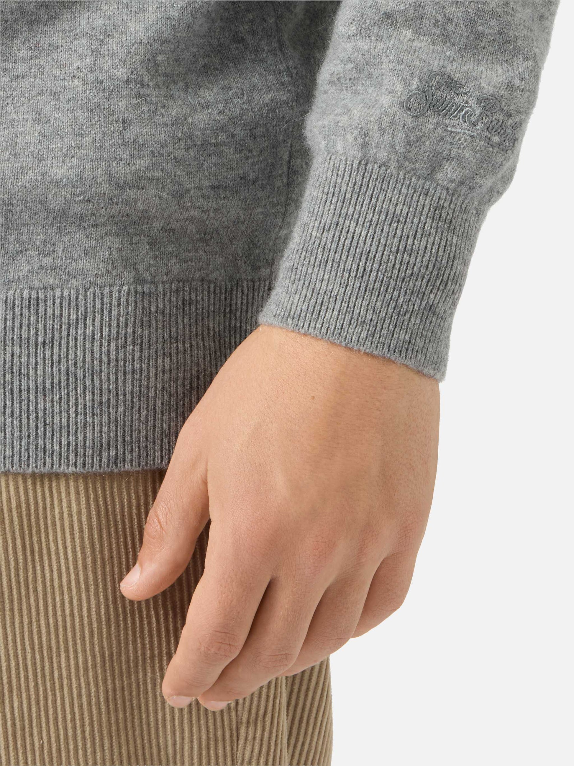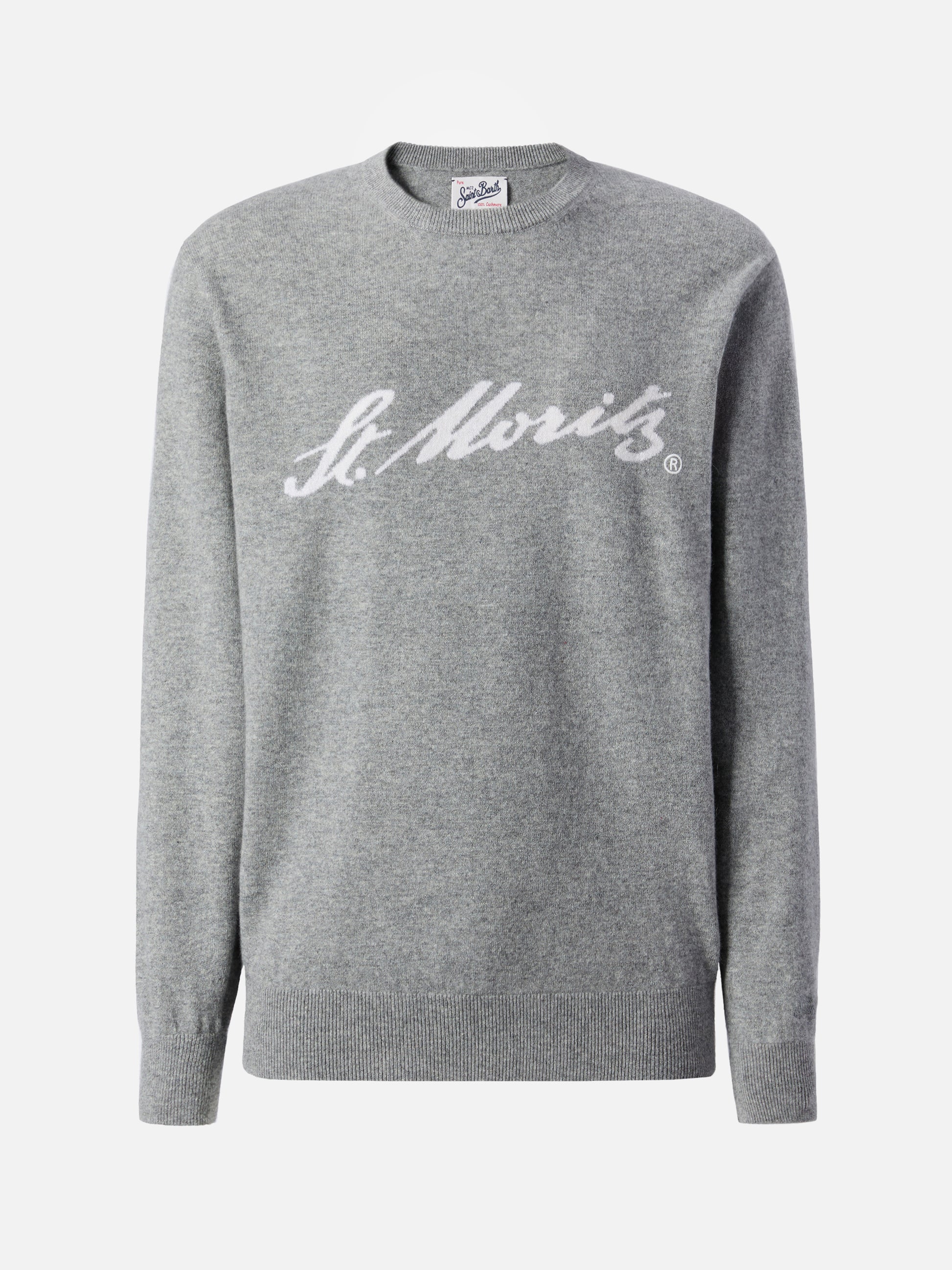 Grauer Heron Light Pullover aus 100 % Kaschmir mit St. Moritz Intarsien | ST. MORITZ TOP OF THE WORLD