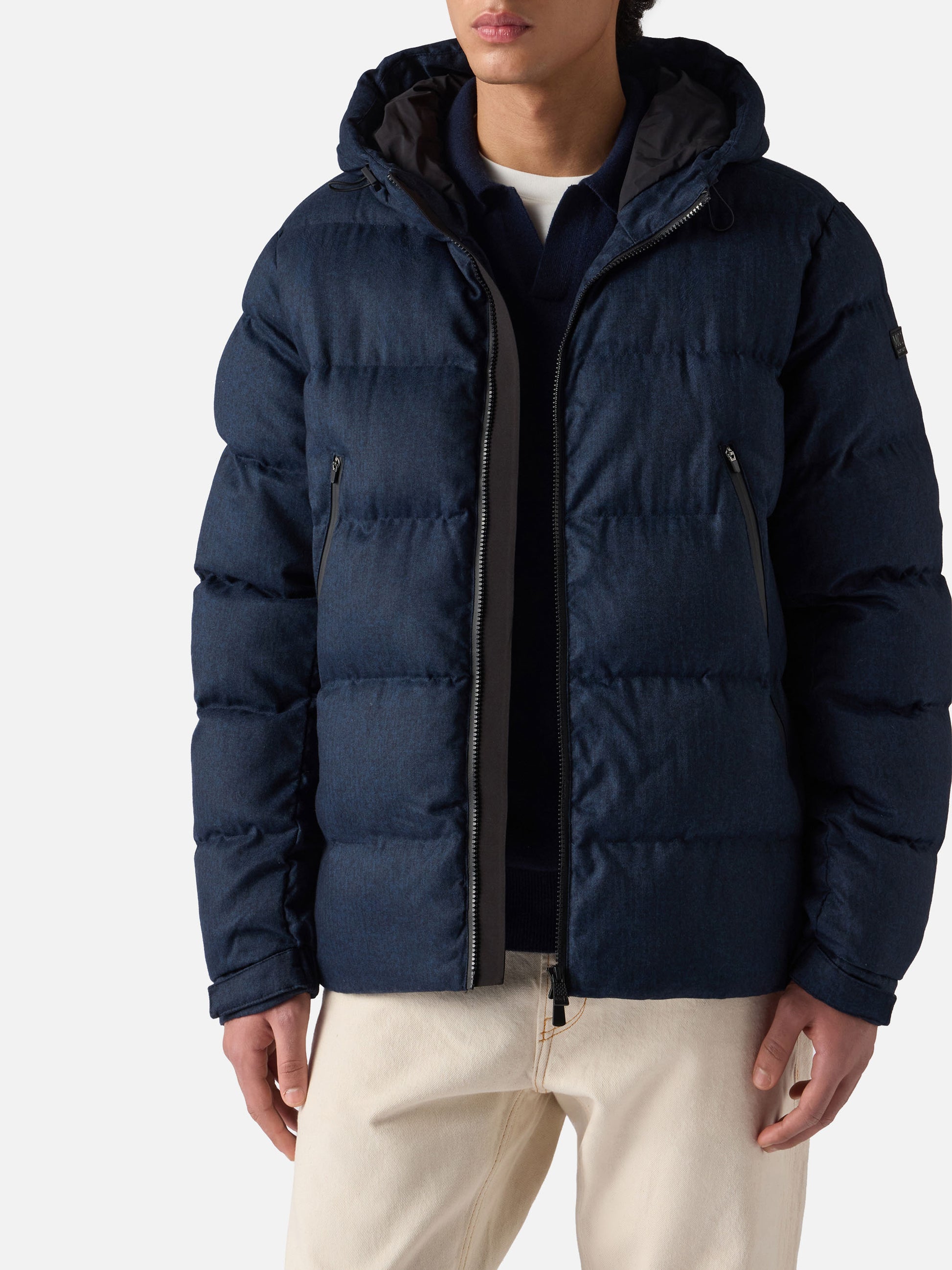 Marineblaue Steppjacke aus Flanell mit Kapuze für Herren von Maier