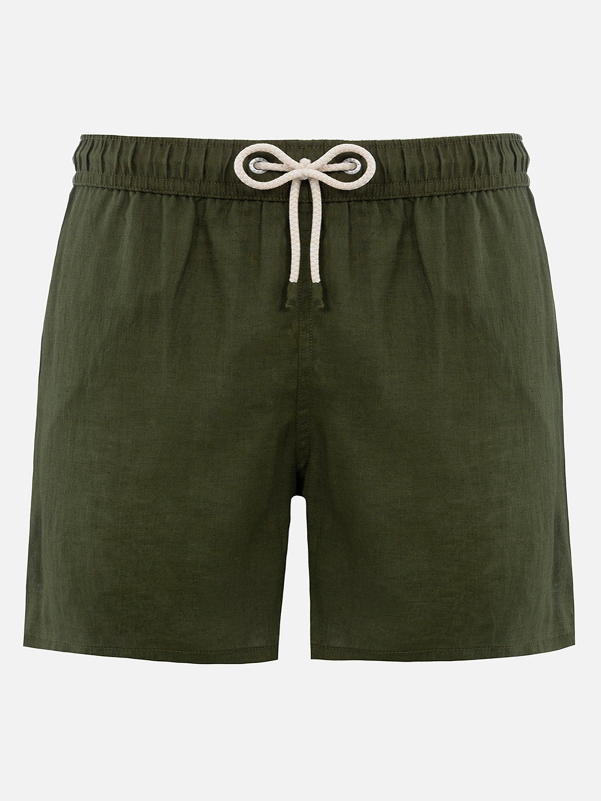 Mittellange militärgrüne Leinen-Badeshorts Gustavia