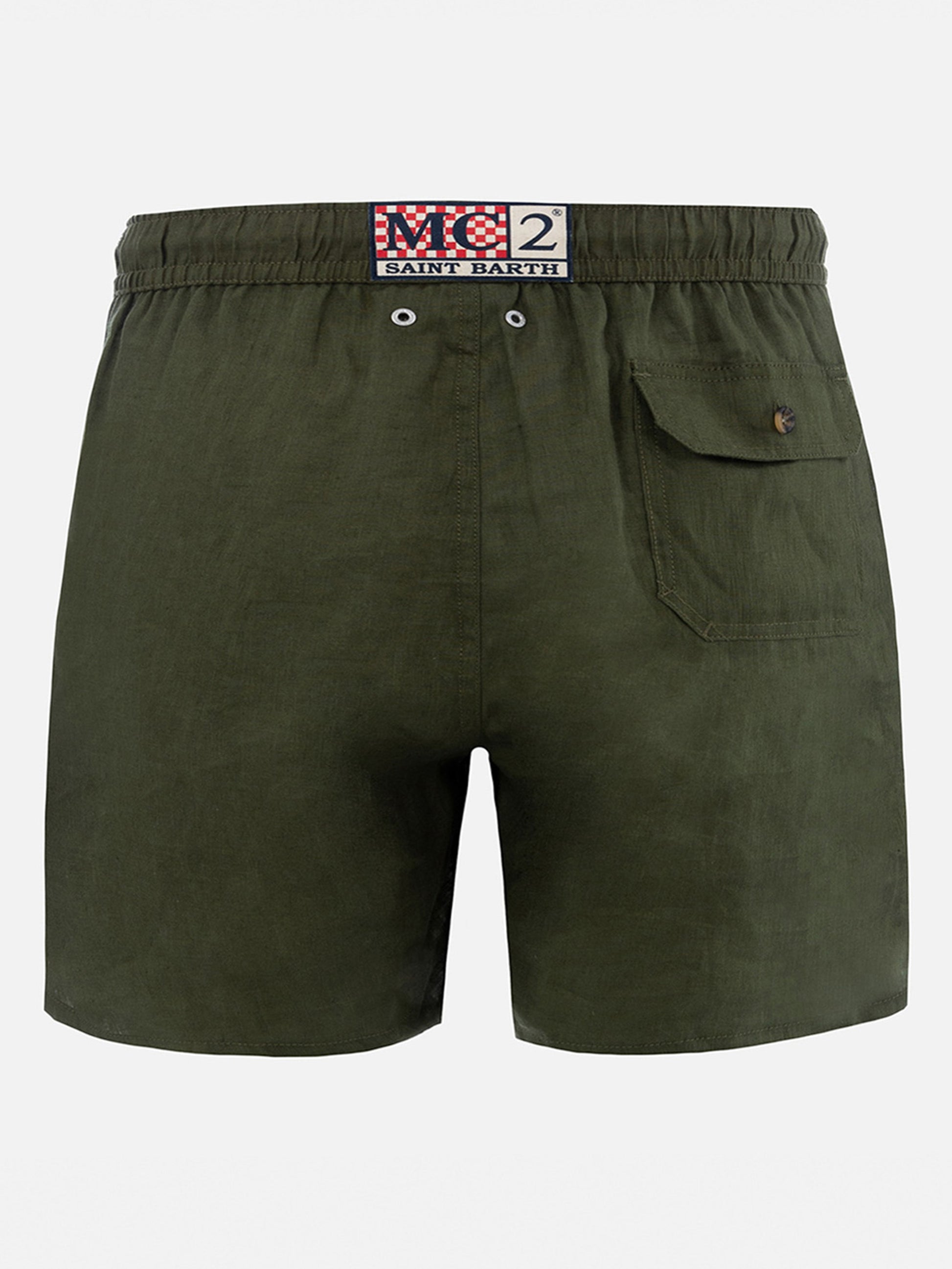 Mid-length military green linen swim-shorts Gustavia - MC2 Saint Barth