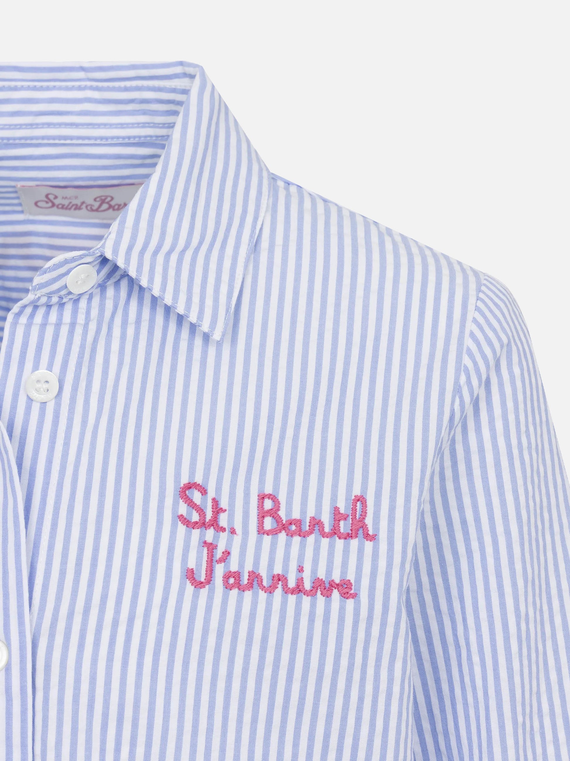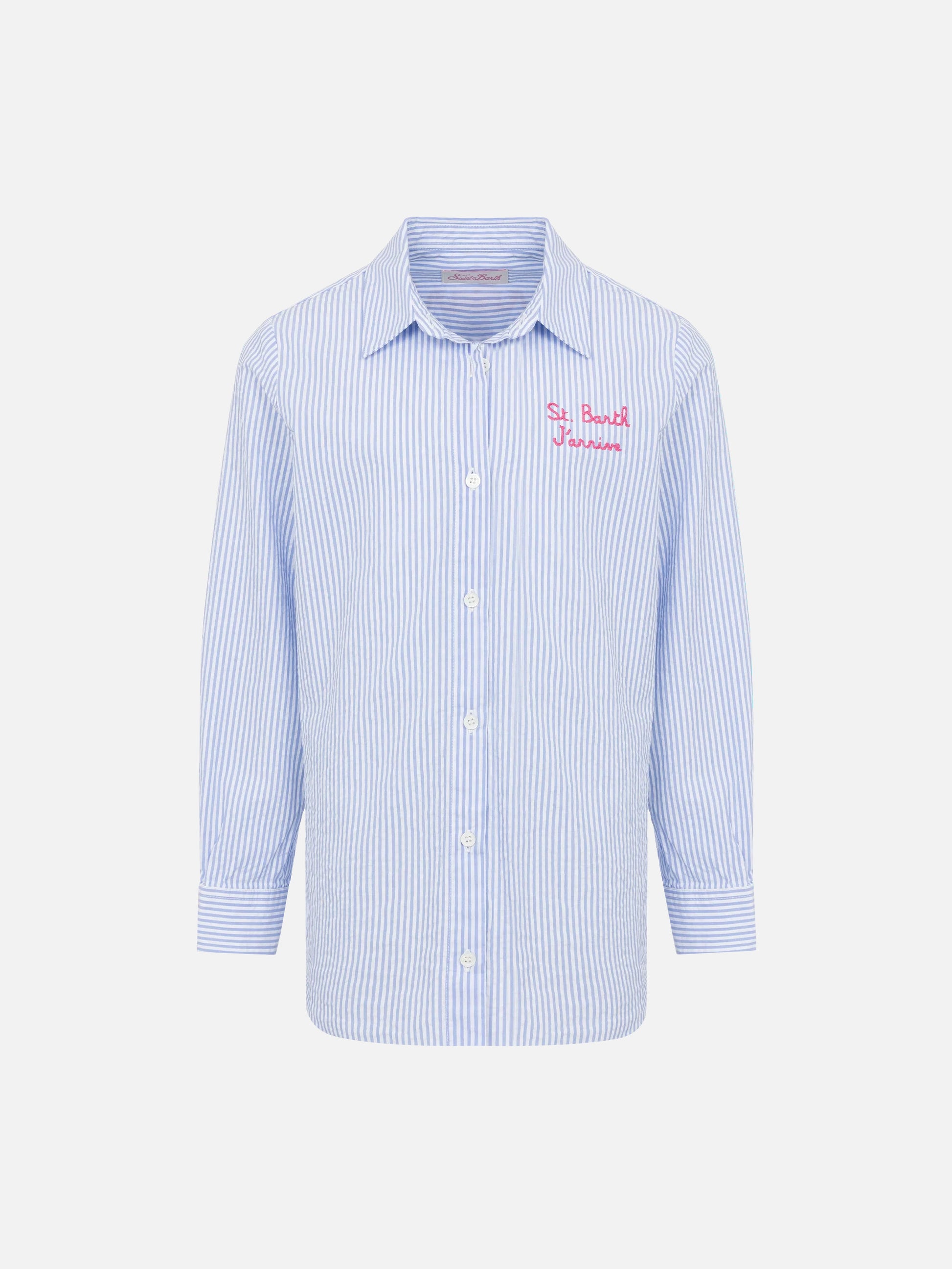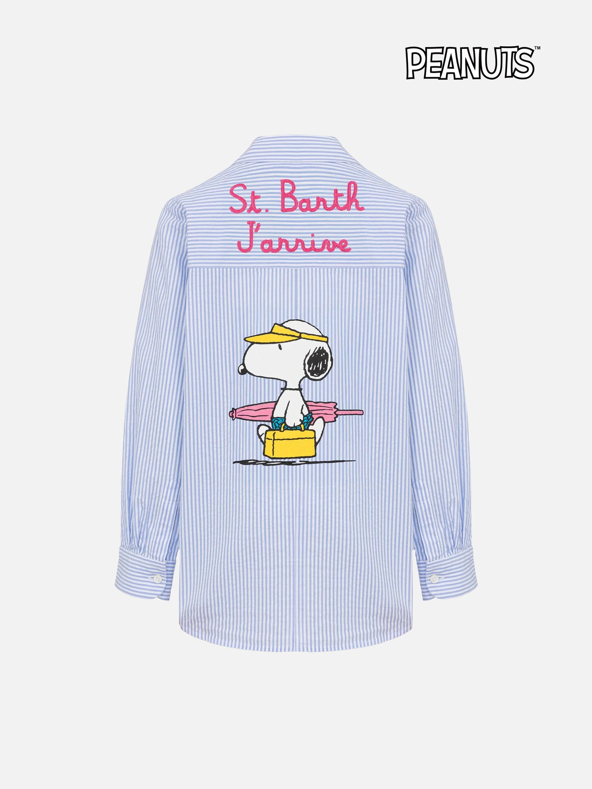 Mini Brigitte hellblau gestreiftes Seersucker-Hemd mit Snoopy-Print | SNOOPY PEANUTS® SPECIAL EDITION
