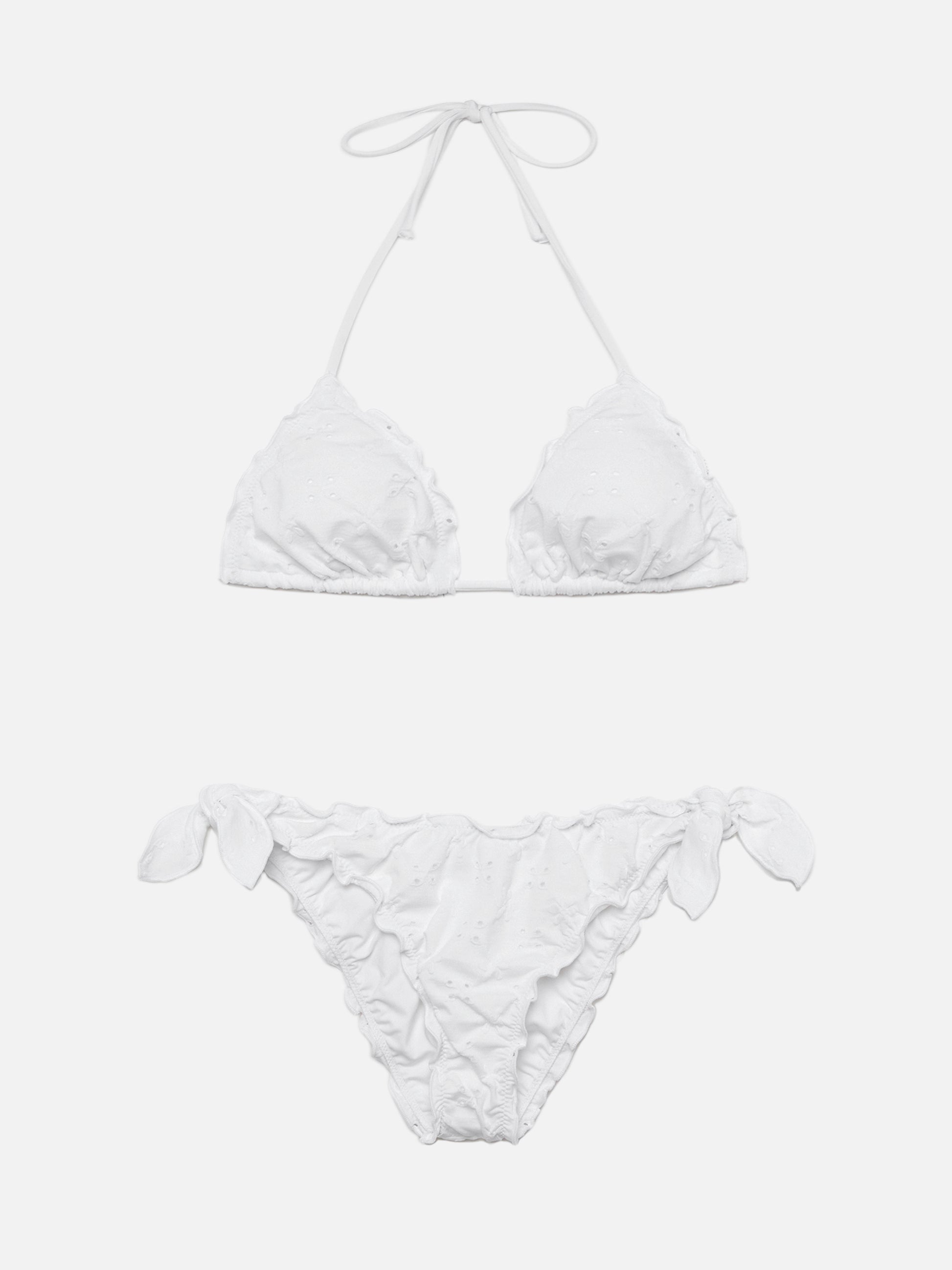 Klassischer Triangel-Bikini Sagittarius Moon aus weißer Sangallo-Spitze