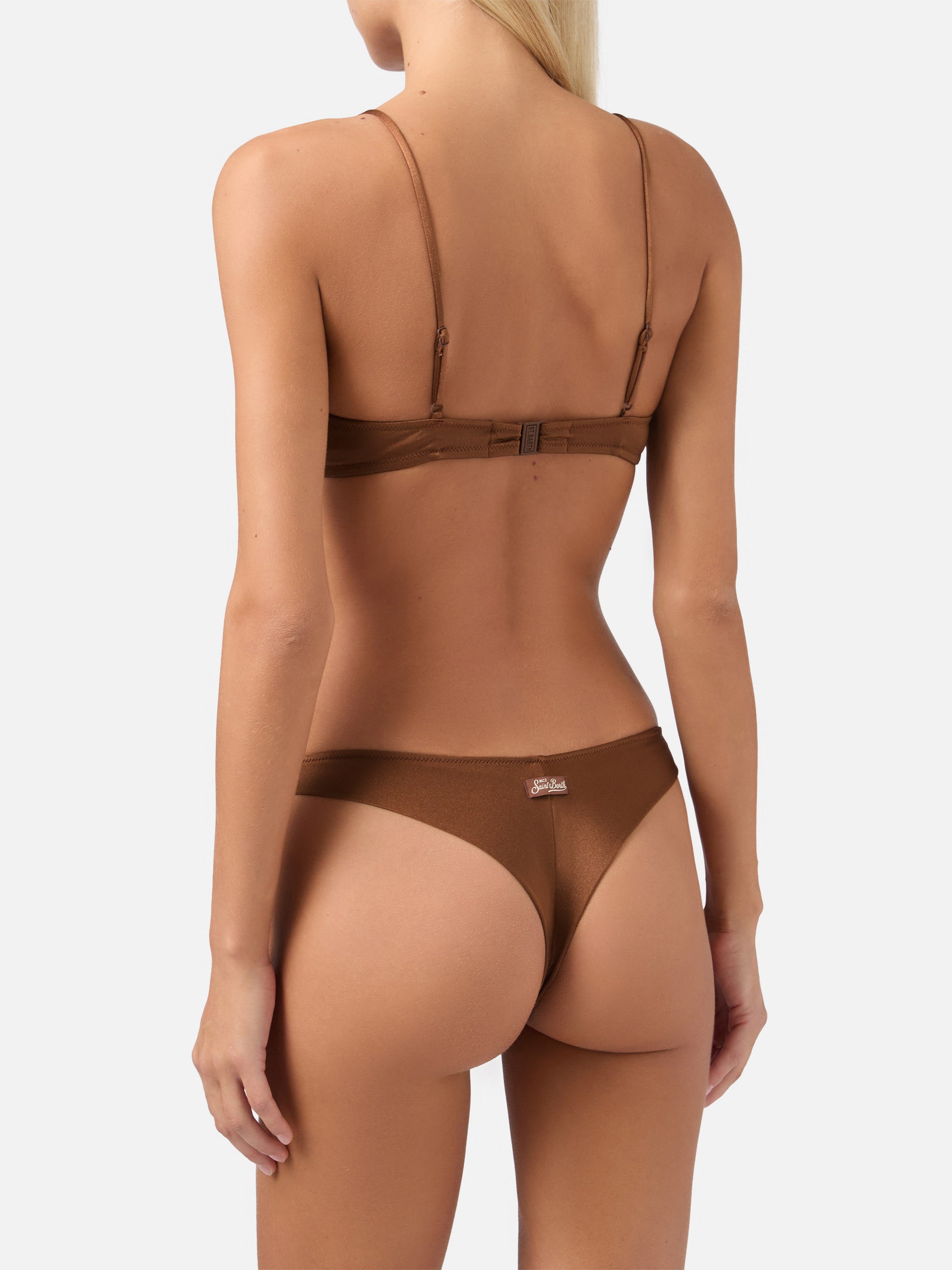 Paloma Naomi tief ausgeschnittener Bralette-Bikini in Braun mit Strassverzierungen