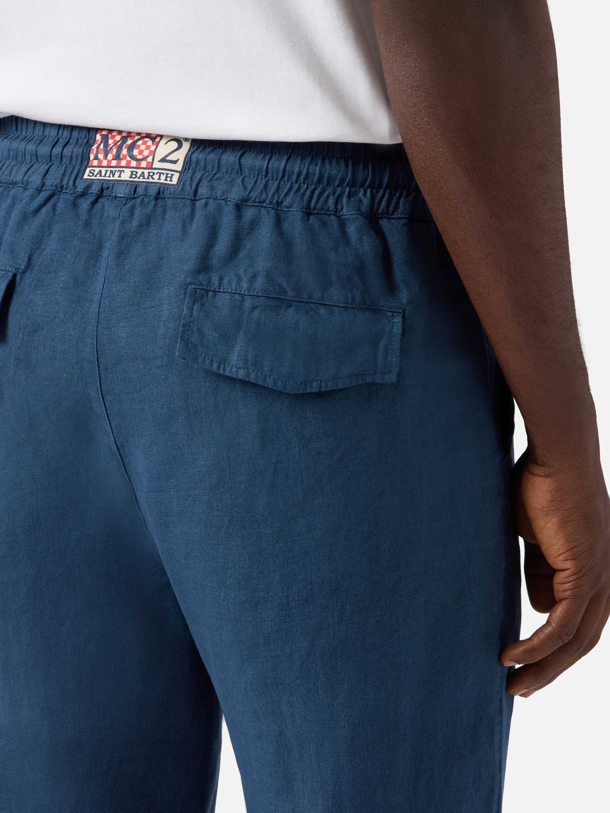 https://it.mc2saintbarth.com/de/products/navy-blue-brown-calais-long-pants-in-pure-linen10781194518874Navy blue brown Calais long pants in pure linen189,00https:files/UID_CAA000109931L-MAN-PANT-BLUE-MC2-MC2_2.jpghttps:files/UID_CAA000109931L-MAN-PANT-BLUE-MC2-MC2_2.jpgEURInStockPANT650948215130Alle Produkte – nur von Man649134276954AVADA - Bestseller278947365048Bermudashorts und Hosen für Herren293962940600Herren-Leinenkollektion654690877786Upselling_Man_PantsThe Calais long pants are crafted from pure linen, a lightweight and breathable fabric designed to offer comfort and ease. The solid color design enhances the clean aesthetic of the style. The elasticated waistband with braided rope drawstring with white-red binding allows easy adjustment of the fit. The style is completed with front slanted pockets, back flap pockets with logo buttons and a logo label applied at the center back of the waistband. The straight leg and relaxed fit ensure comfort and freedom of movement.