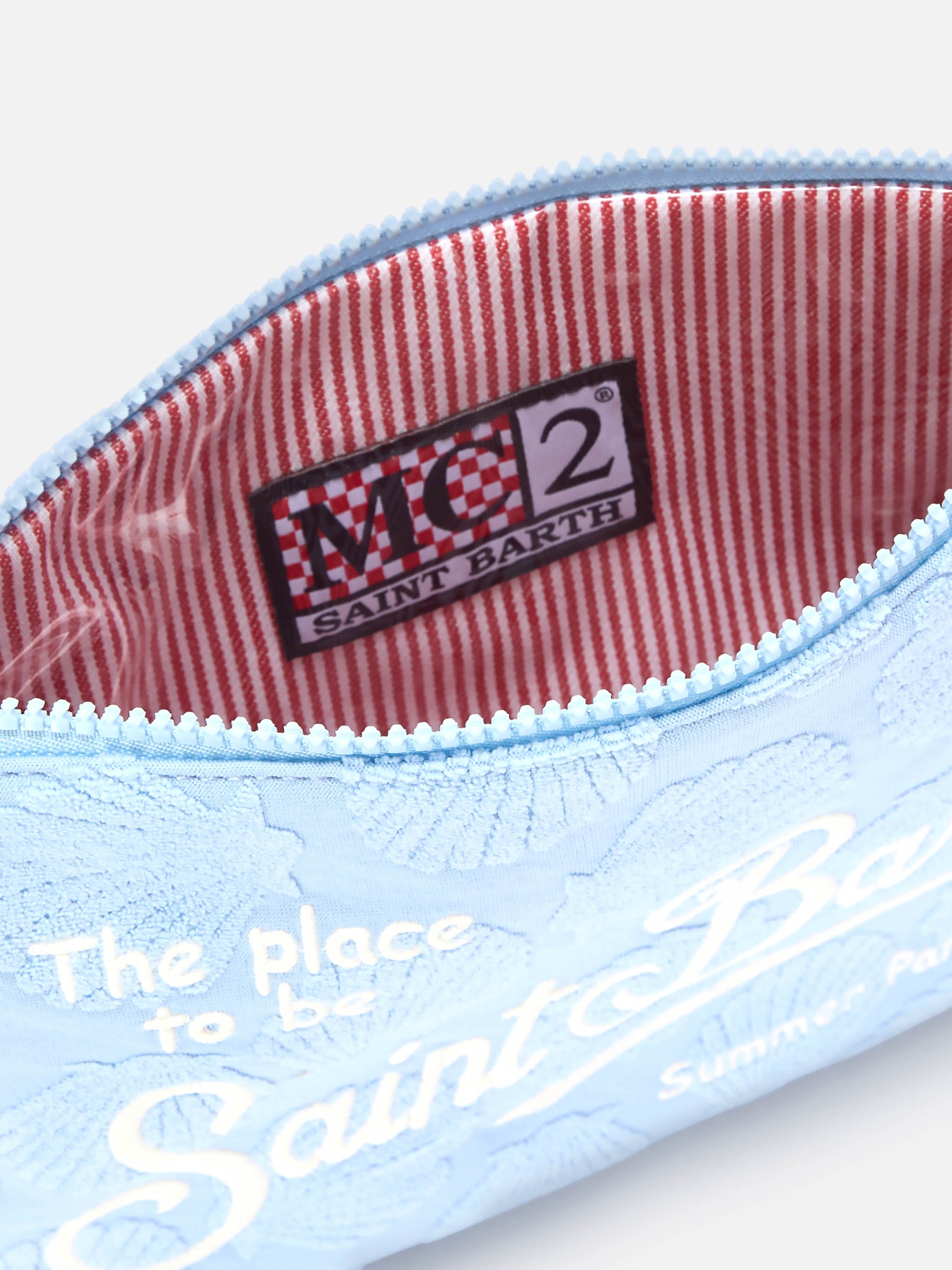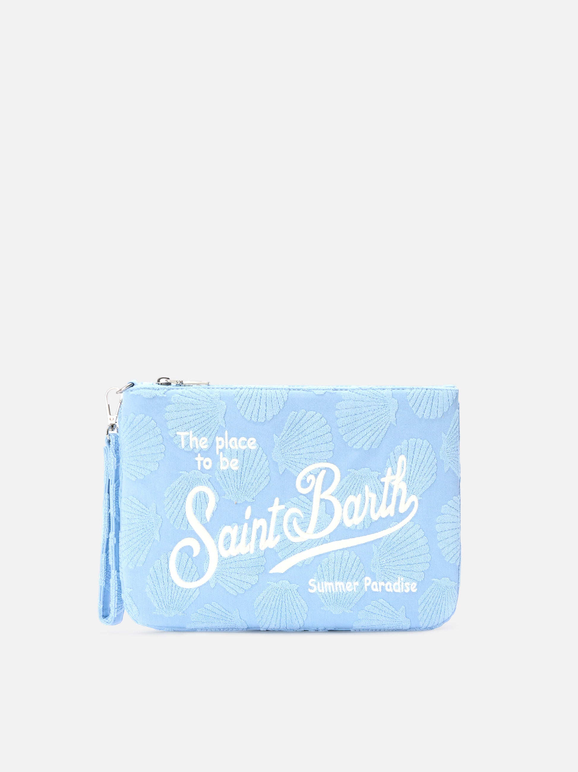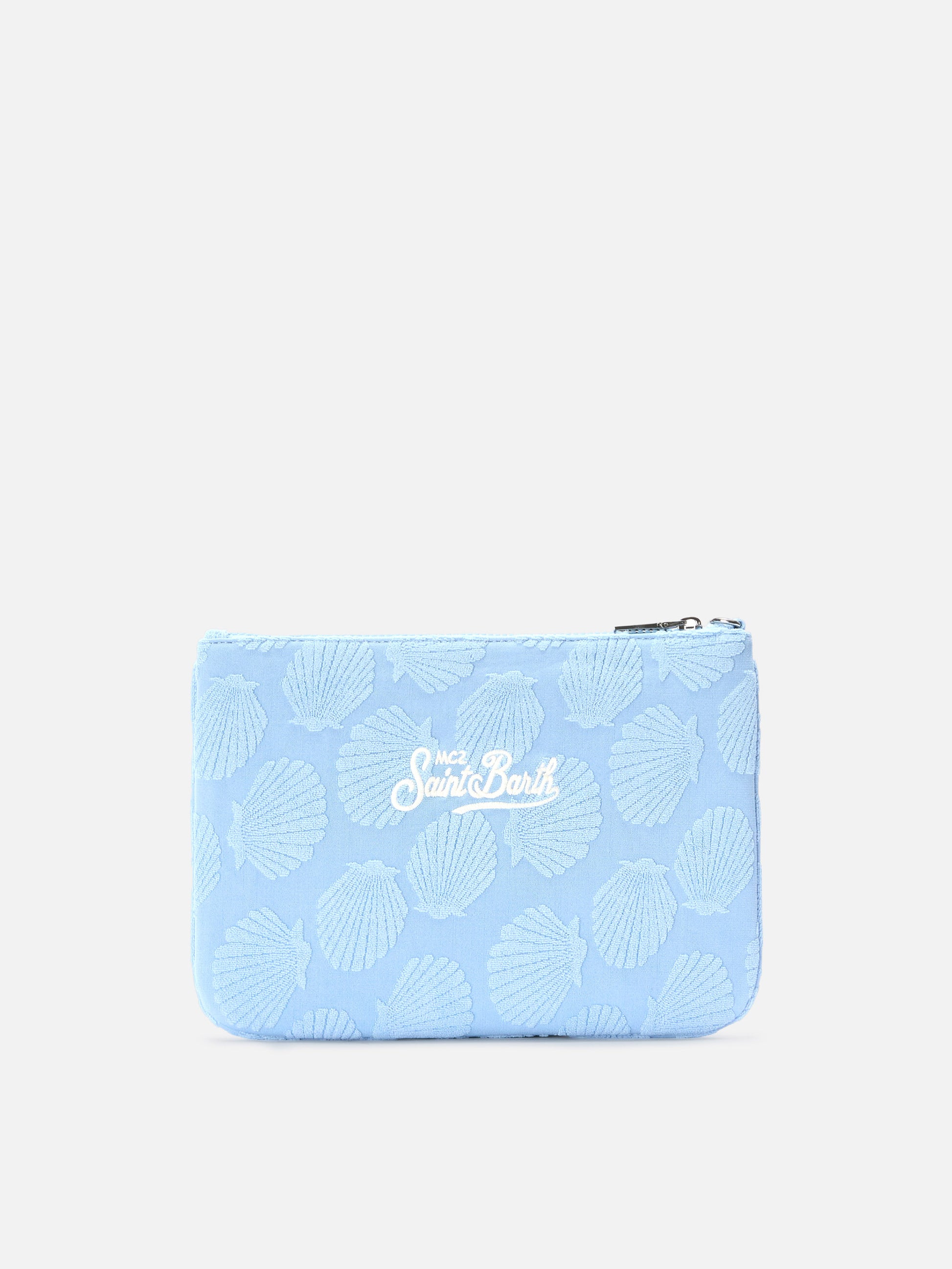 Parisienne Sponge terry-effect pouch with embossed shell pattern and removable strap