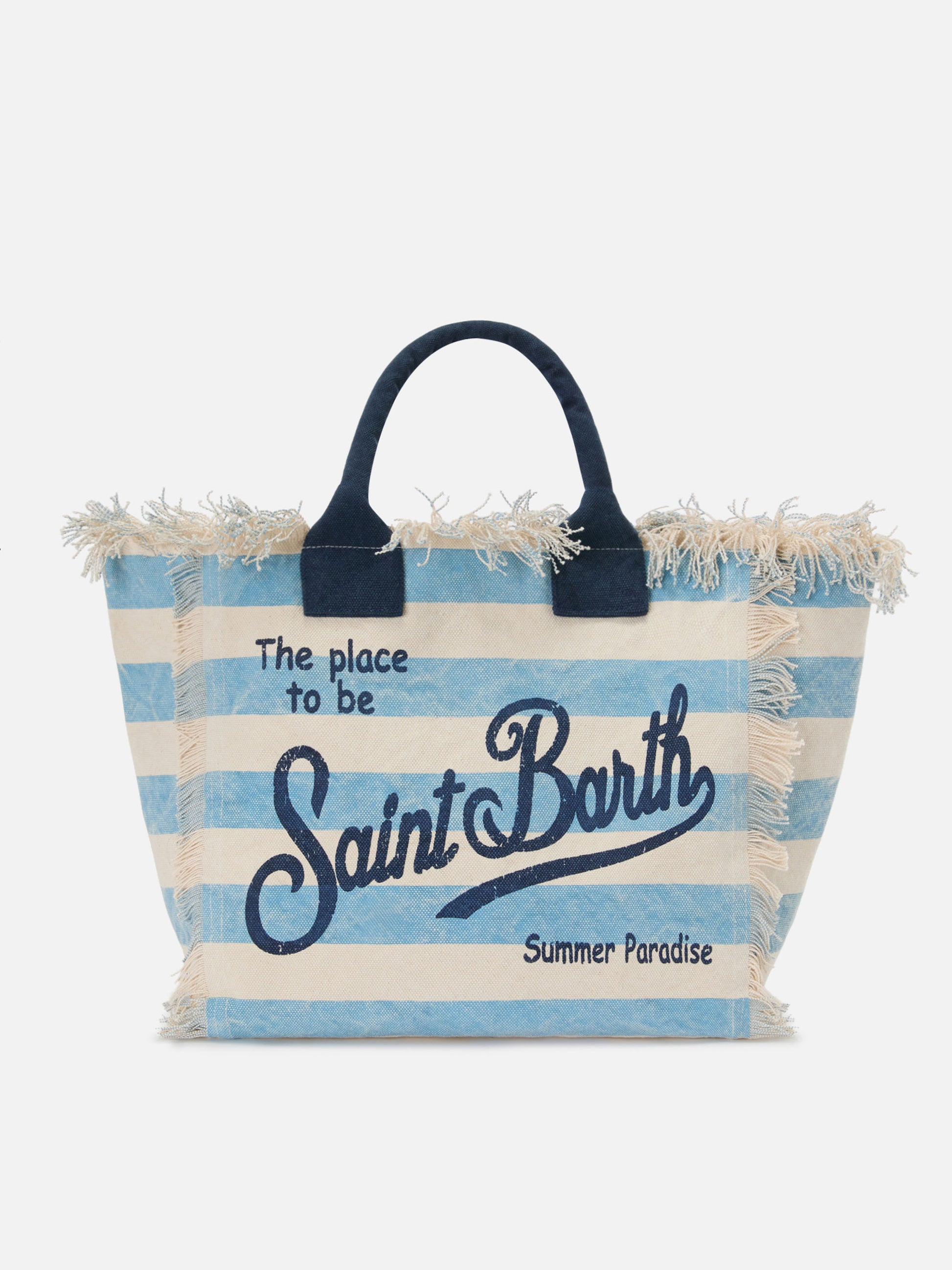 Regular Vanity canvas bag with light blue horizontal stripes