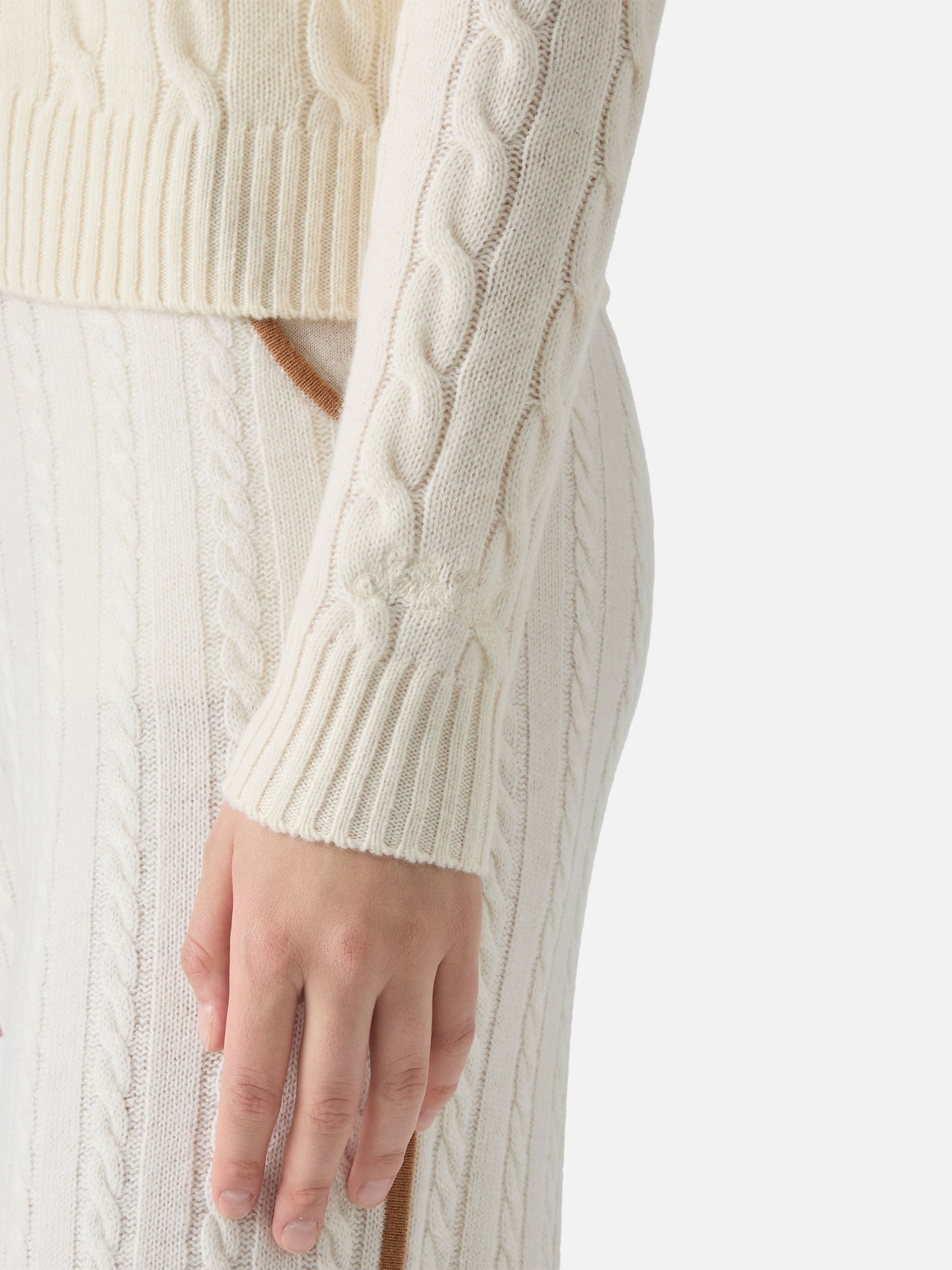 Dinard Zopfstrickhose aus weißer Wolle mit St. Barth-Stickerei