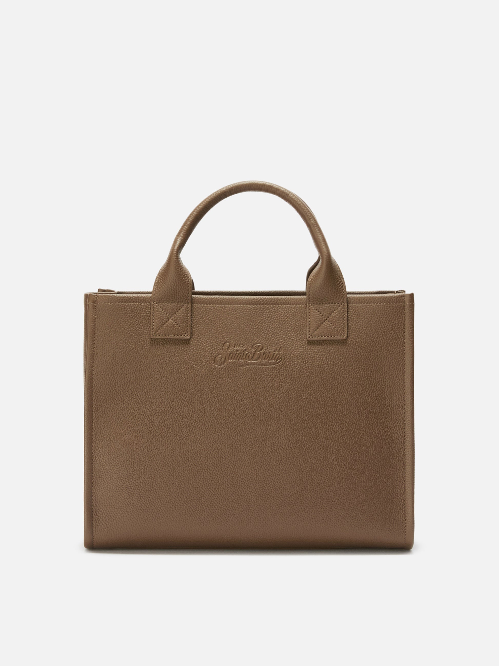 Große Vanity Bag Schultertasche aus braunem, gehämmertem Leder