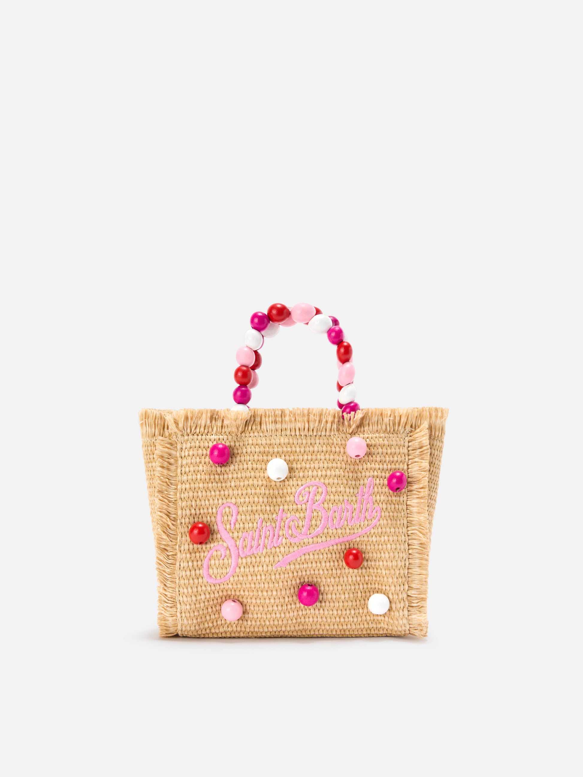 Vanity mini straw effect bag with beaded handle