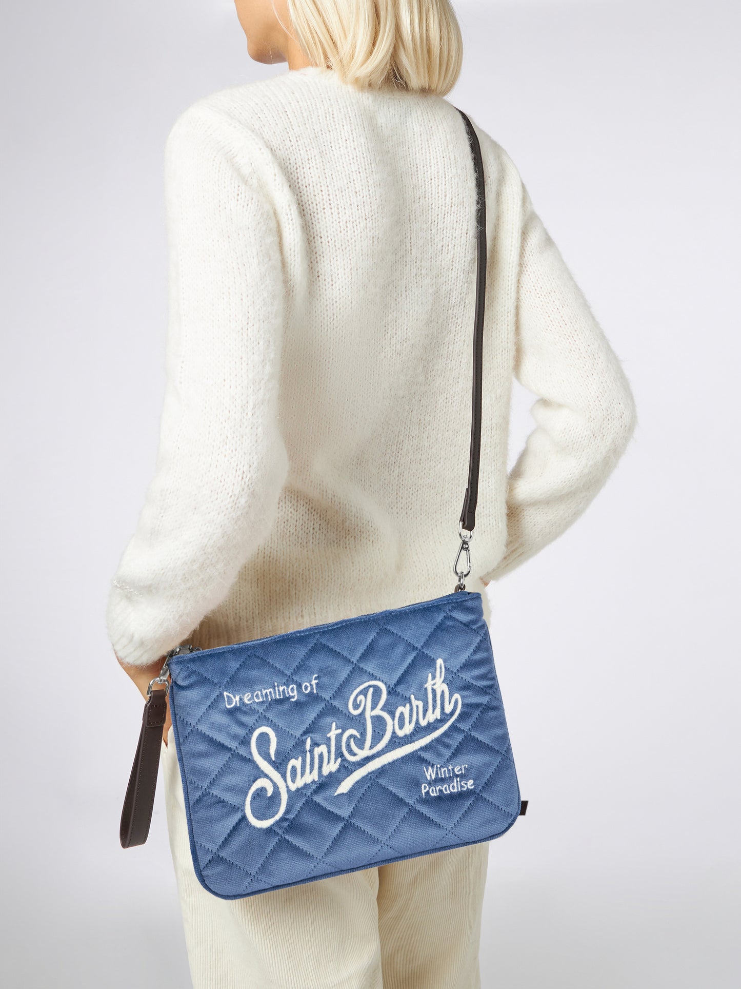 Hellblaue Parisienne Sherpa Umhängetasche Clutch aus Samtstepp