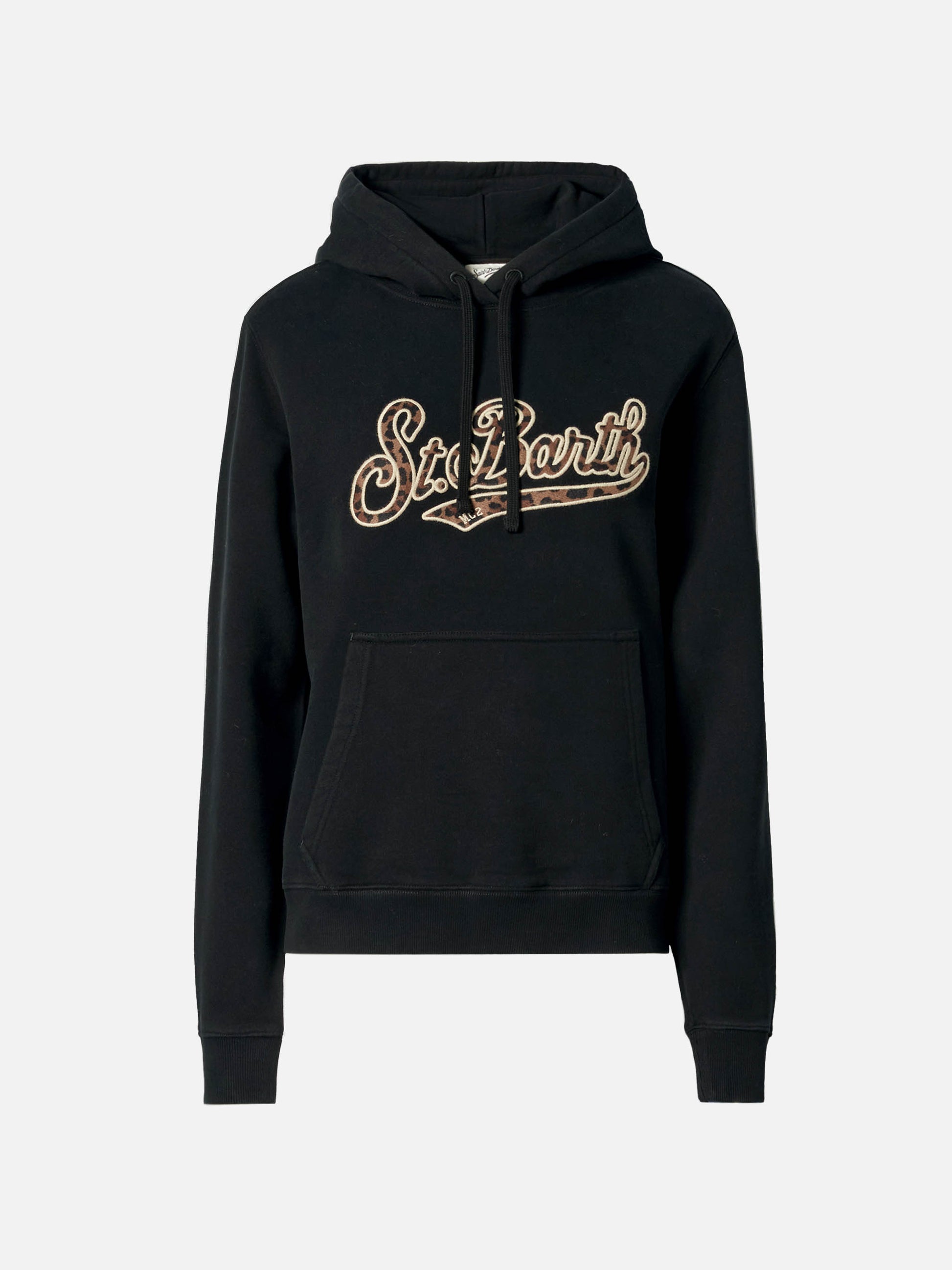 Virginia cotton hoodie in black with animal-print St. Barth embroidery