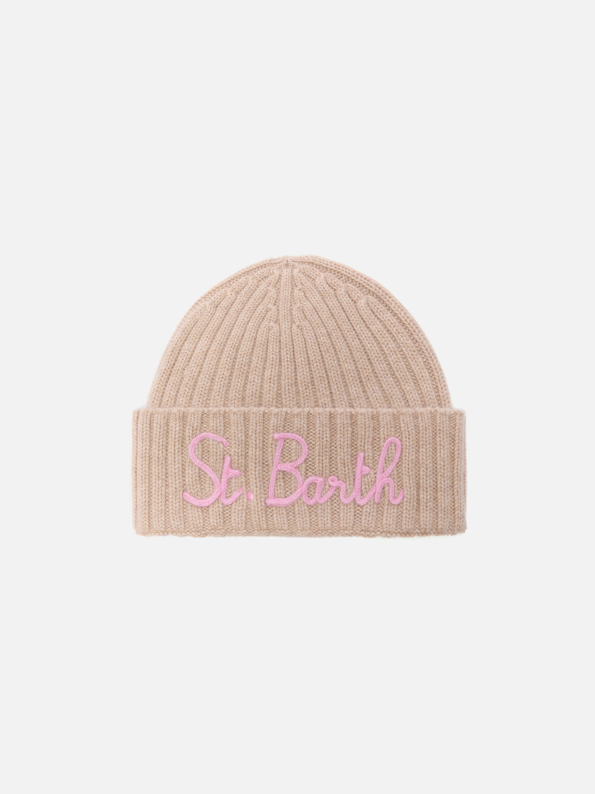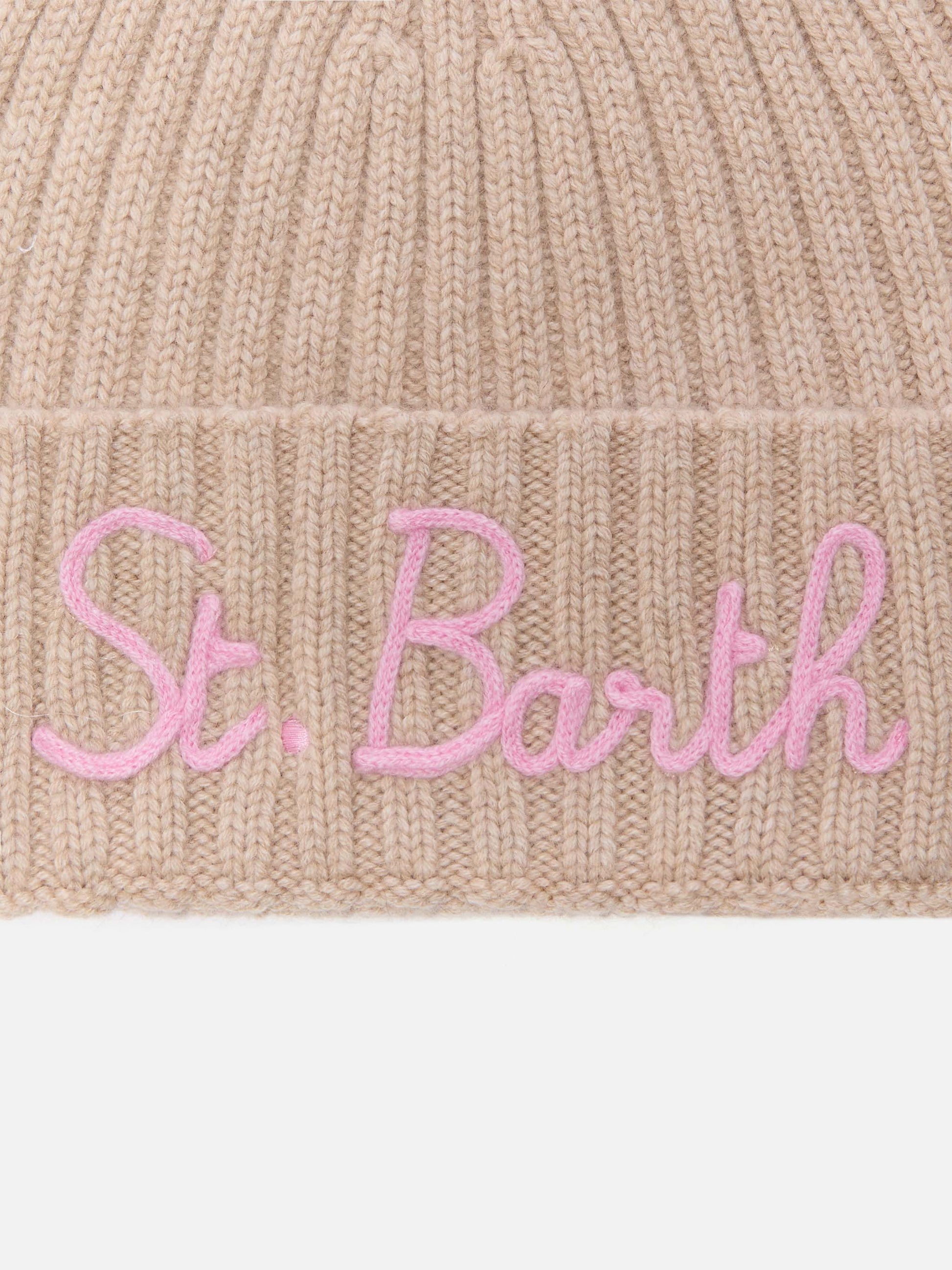 Cashmere blended benie Wengen in beige with St. Barth embroidery