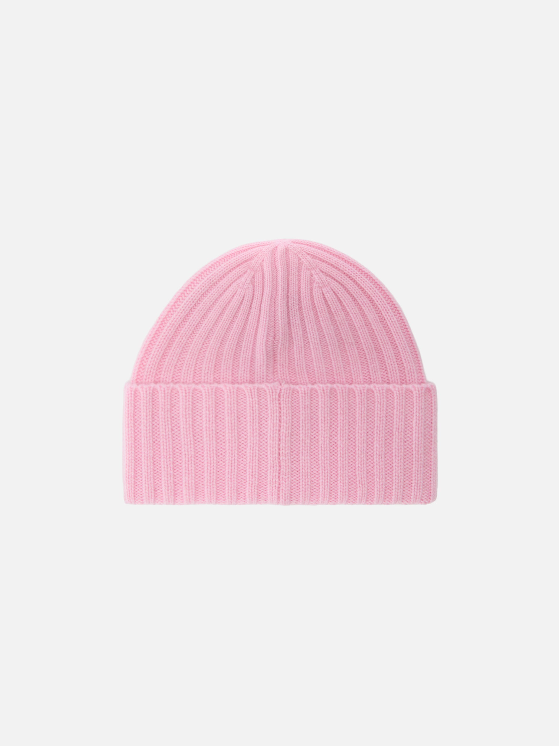 Wengen-Mütze aus rosa Kaschmir mit St.-Barth-Stickerei am Umschlag