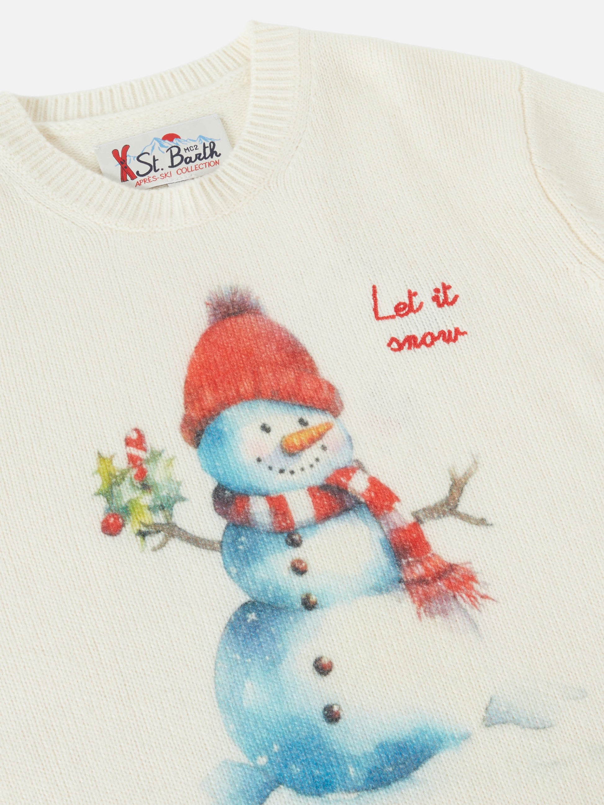 Weißer Douglas-Rundhalspullover mit „Let it snow“-Stickerei