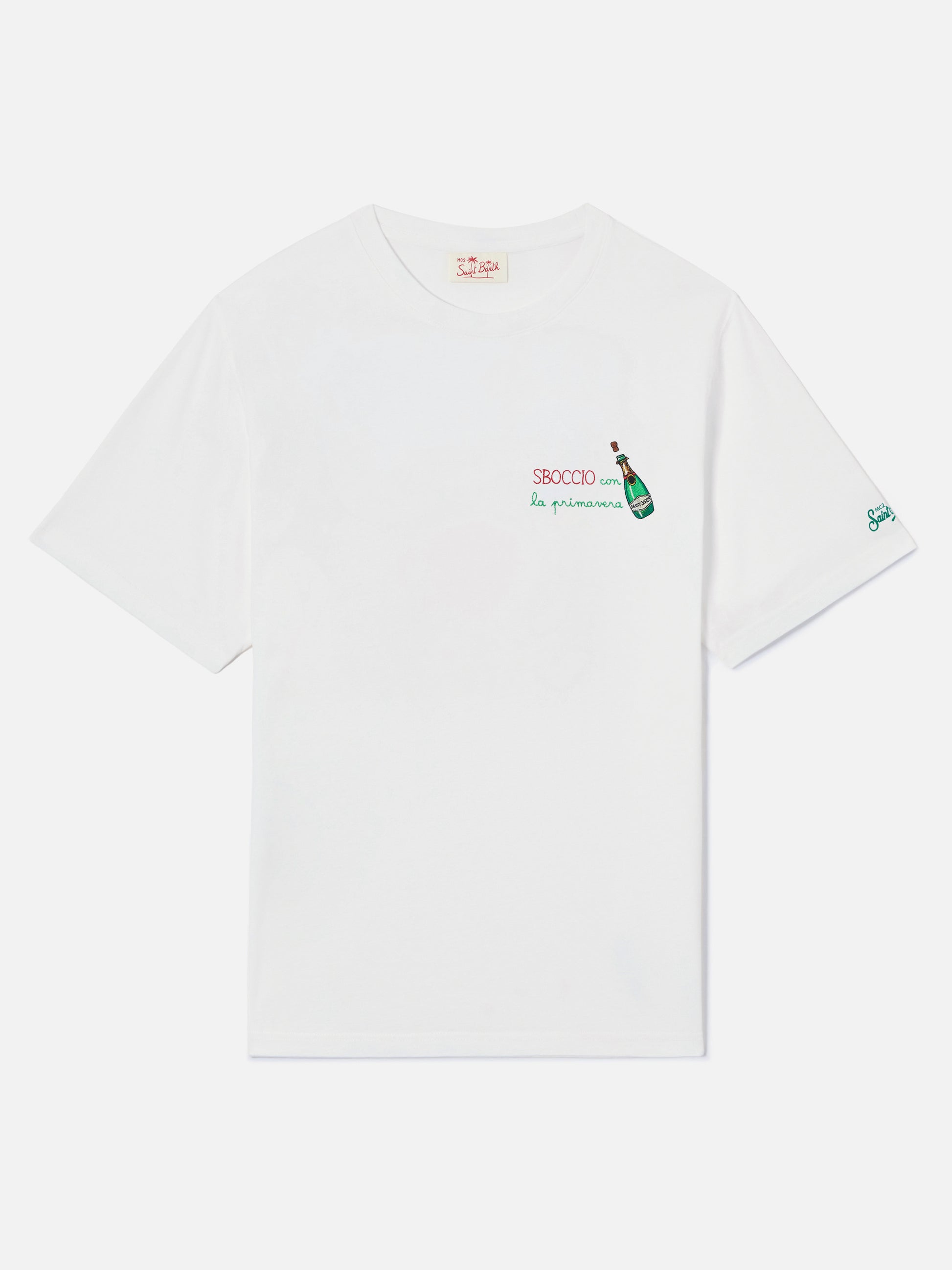 White Portofino T-shirt with Sboccio Con La Primavera embroidery