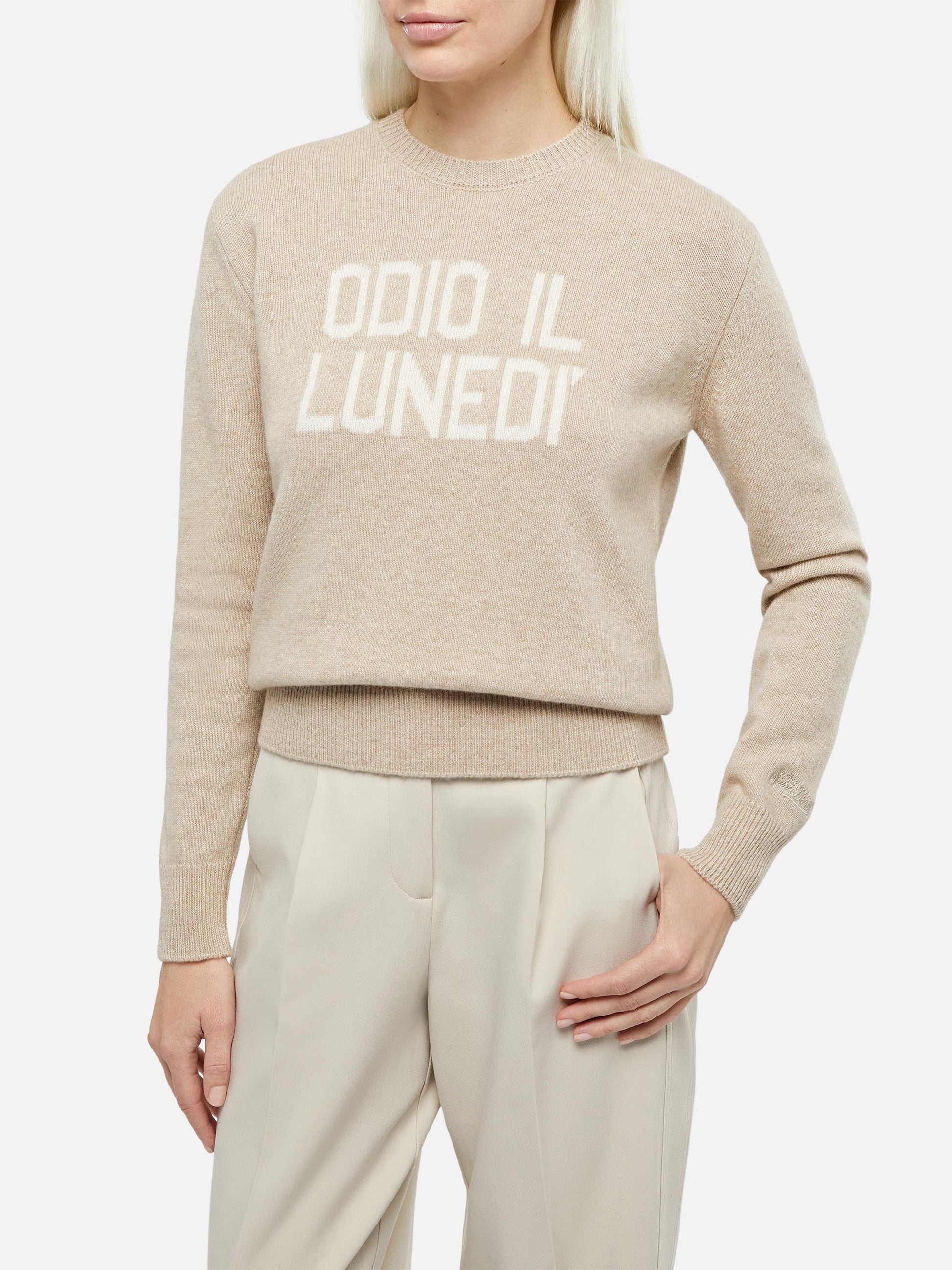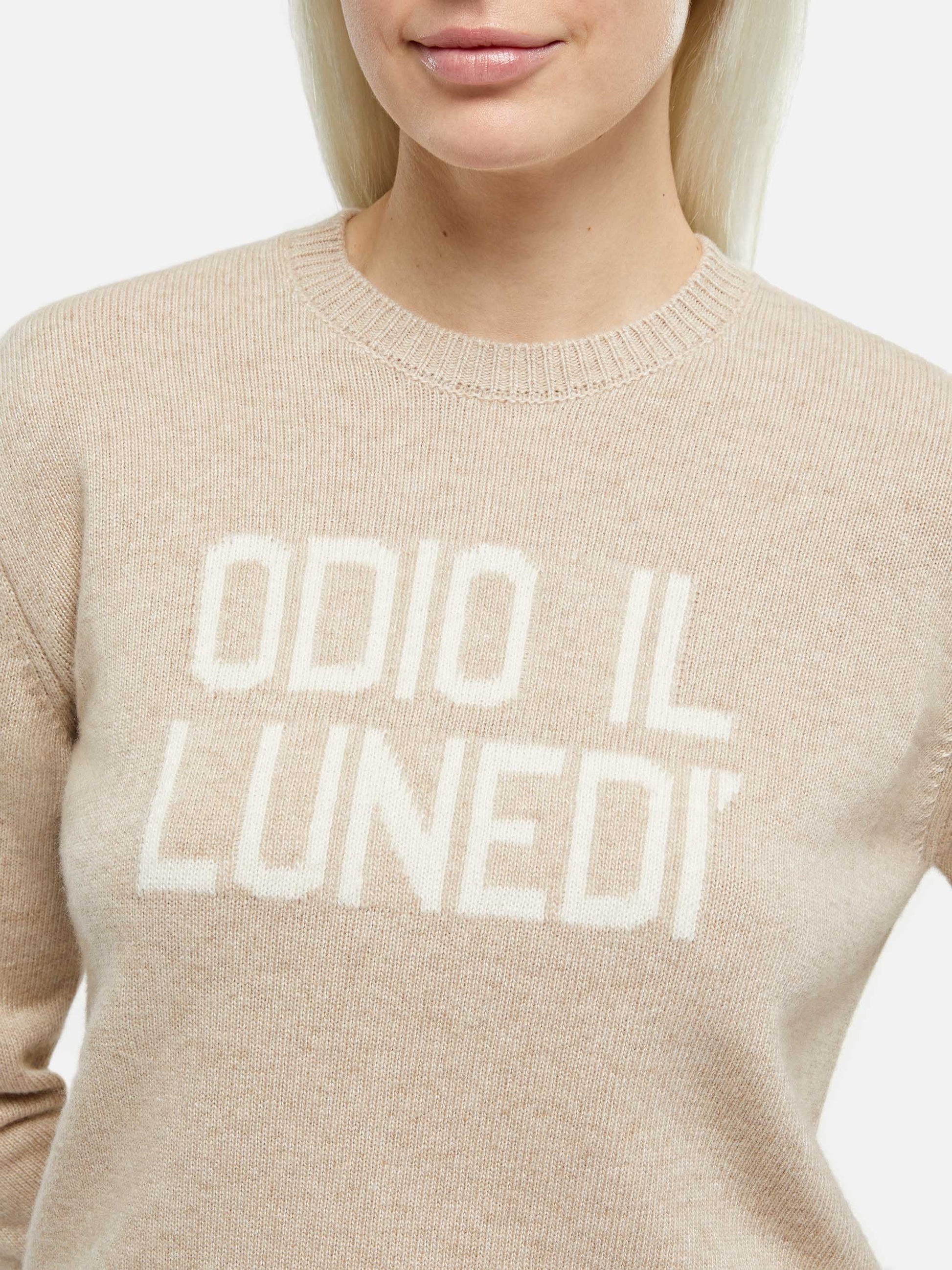 Beiger Damenpullover New Queen mit Odio il Lunedì-Aufdruck