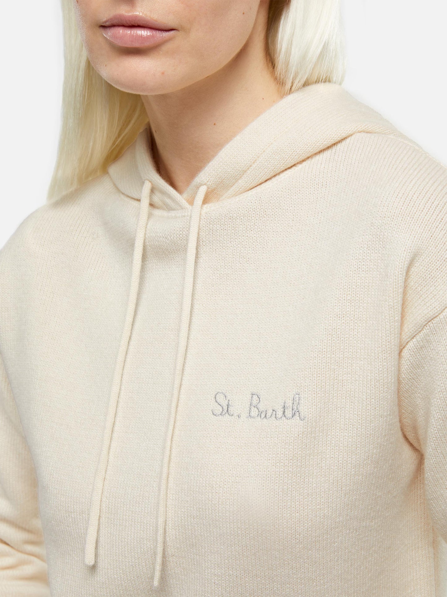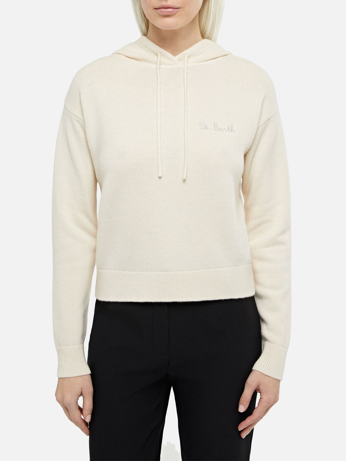 Damen Kapuzenpullover Meg aus cremeweißer Kaschmirmischung