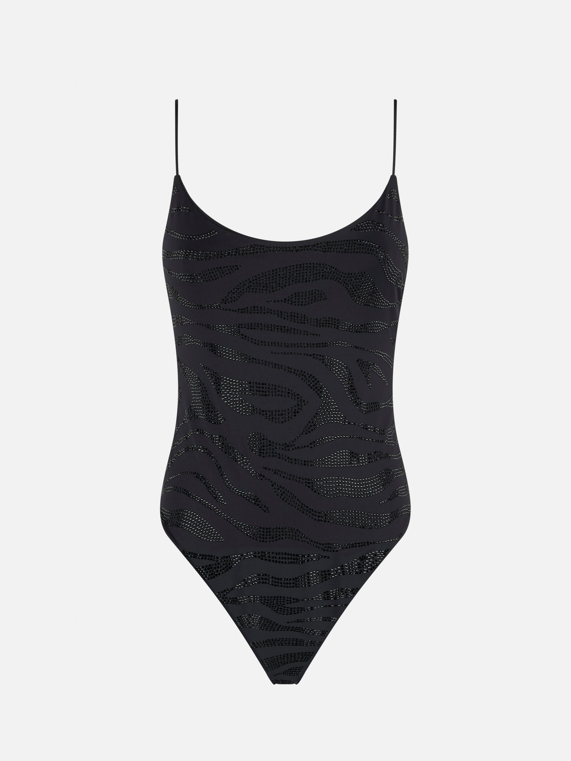 Einteiliger Damen-Badeanzug mit Zebra-Strasssteinen
