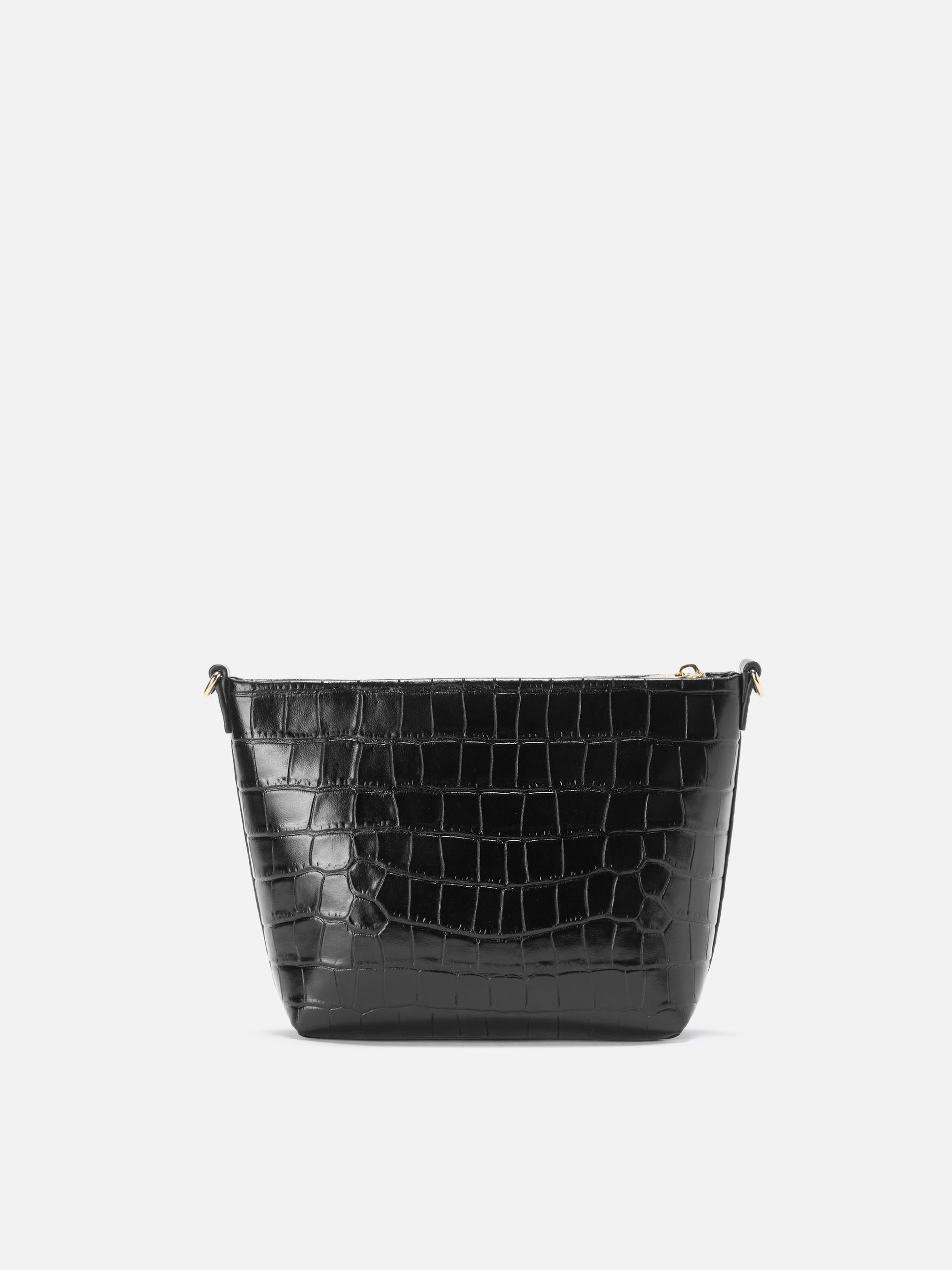Borsa a spalla Aline Bag in pelle stampa cocco nera