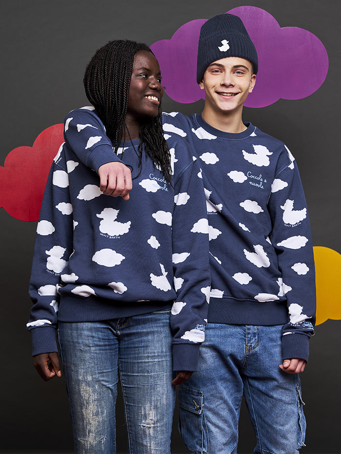 Felpa da bambino girocollo blu con ricamo Coccole e nuvole | EDIZIONE SPECIALE COCCOLEBIMBI