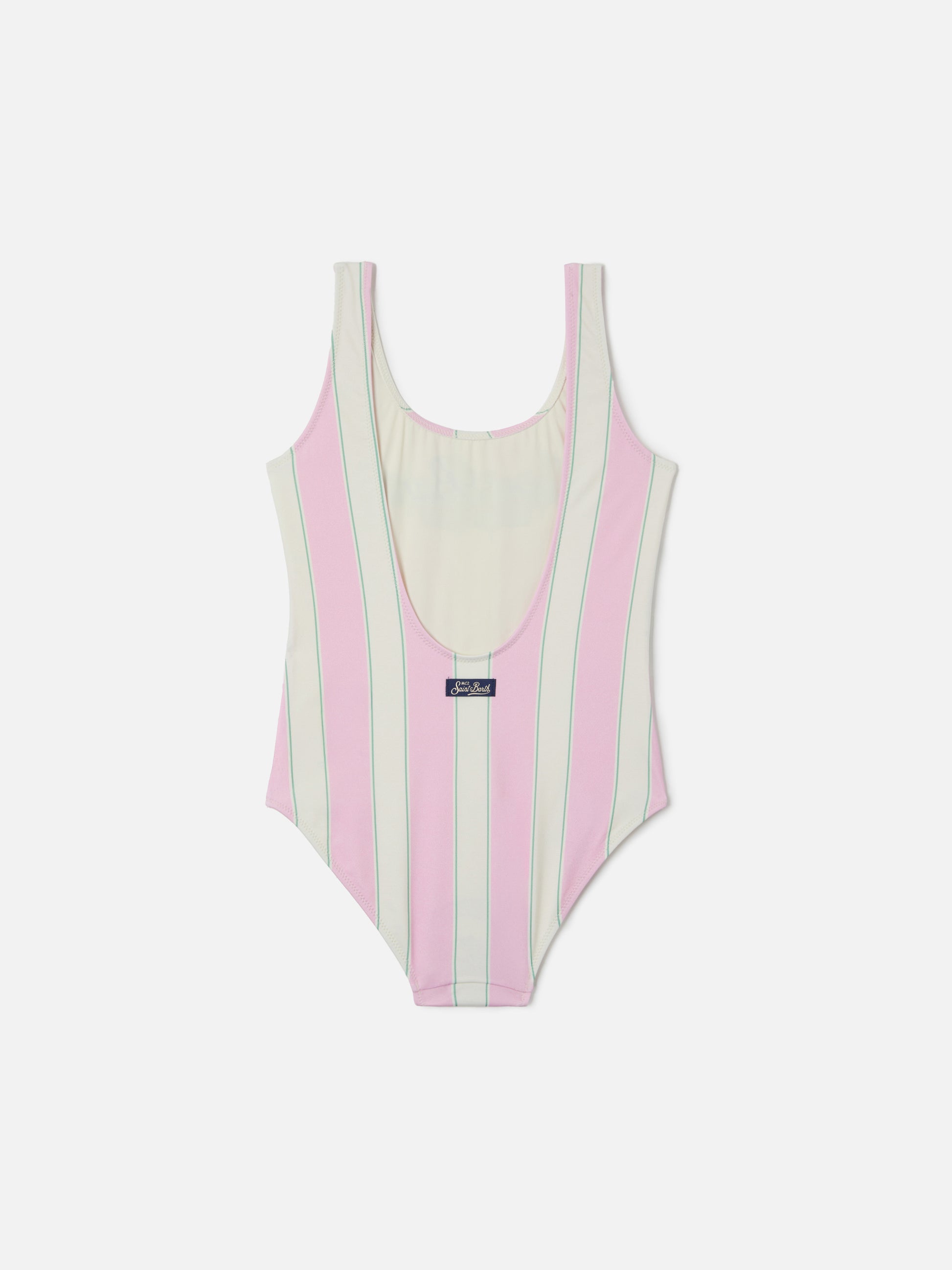 Costume intero Cara a righe rosa e bianche con stampa Beach Club