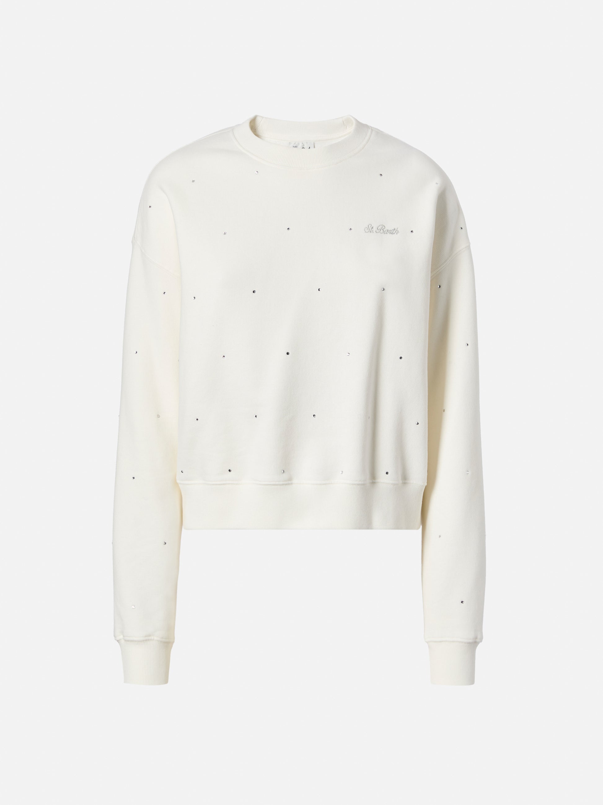 Felpa Casey in cotone bianco con applicazione in strass