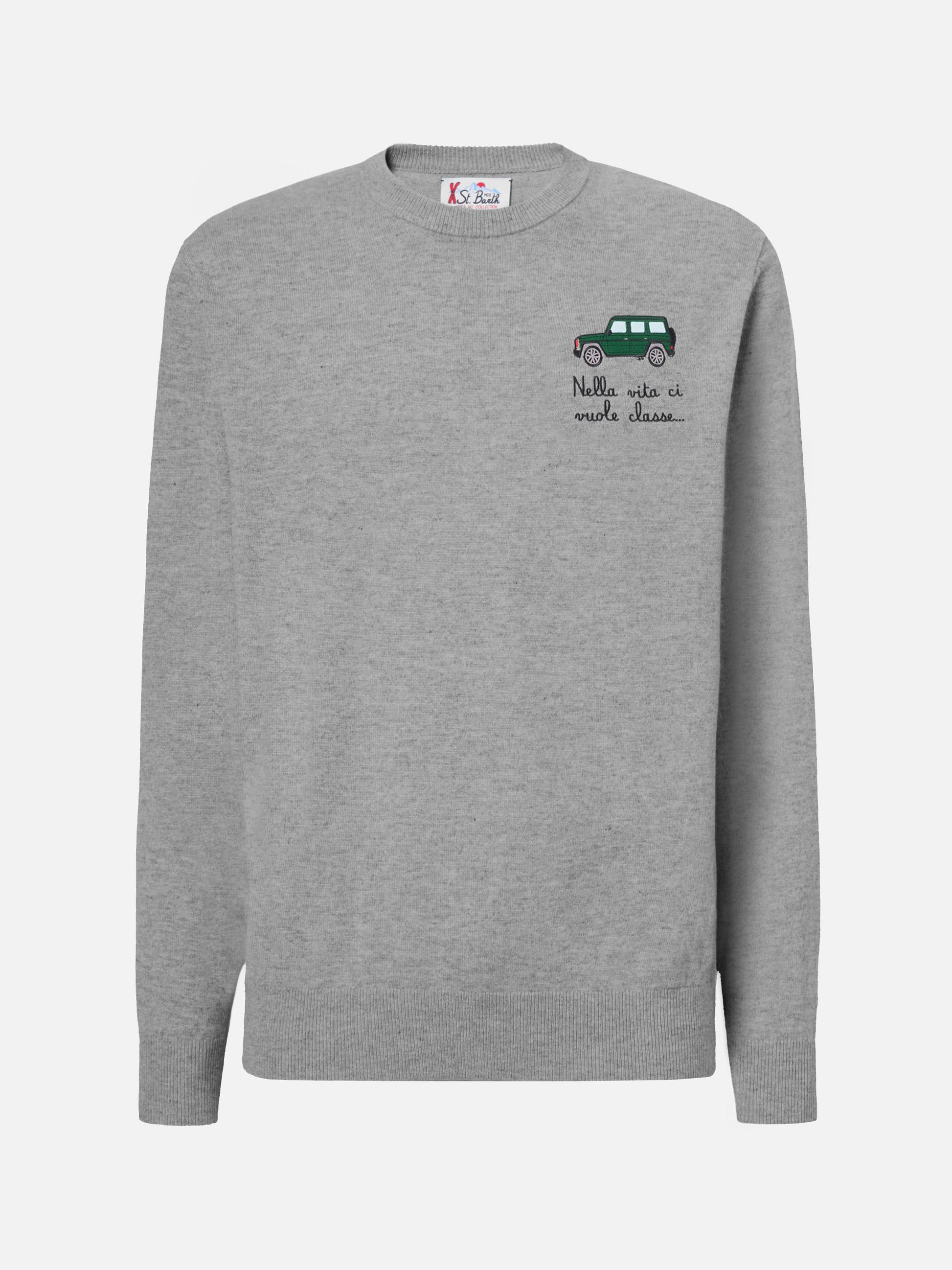 Maglione a girocollo Heron Light con ricamo Nella vita ci vuole classe