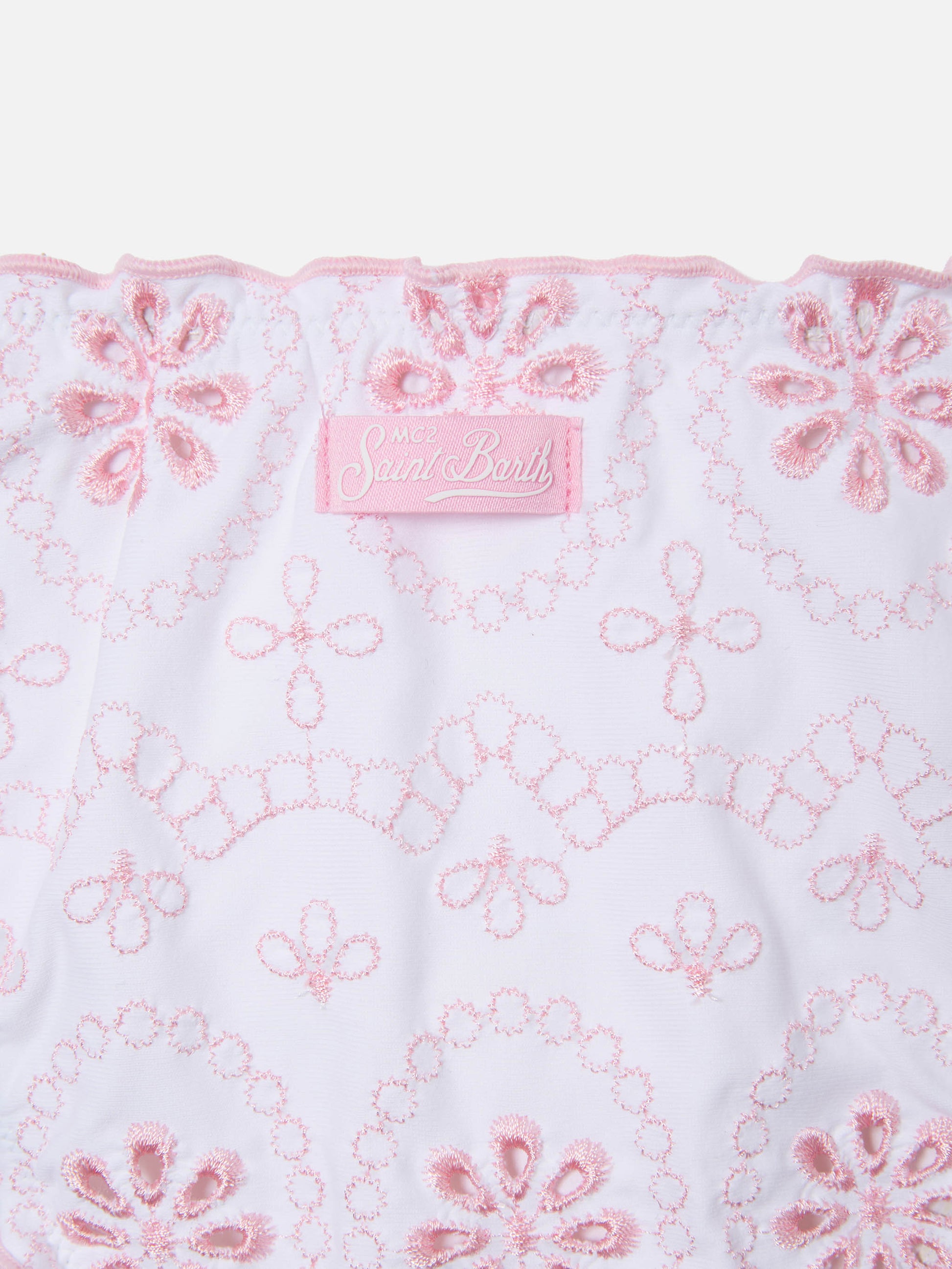 Bikini Cris in tessuto sangallo bianco con ricamo rosa