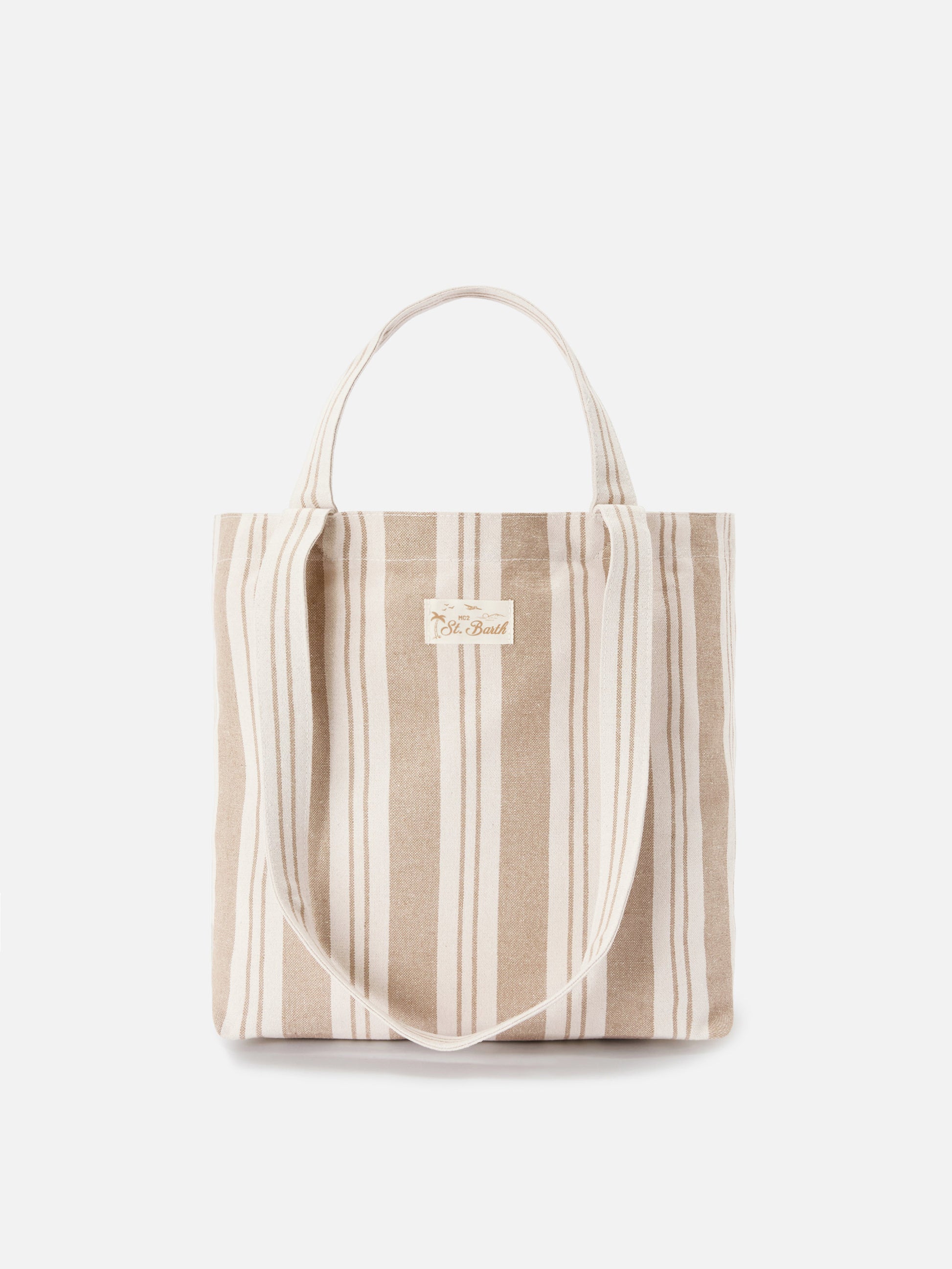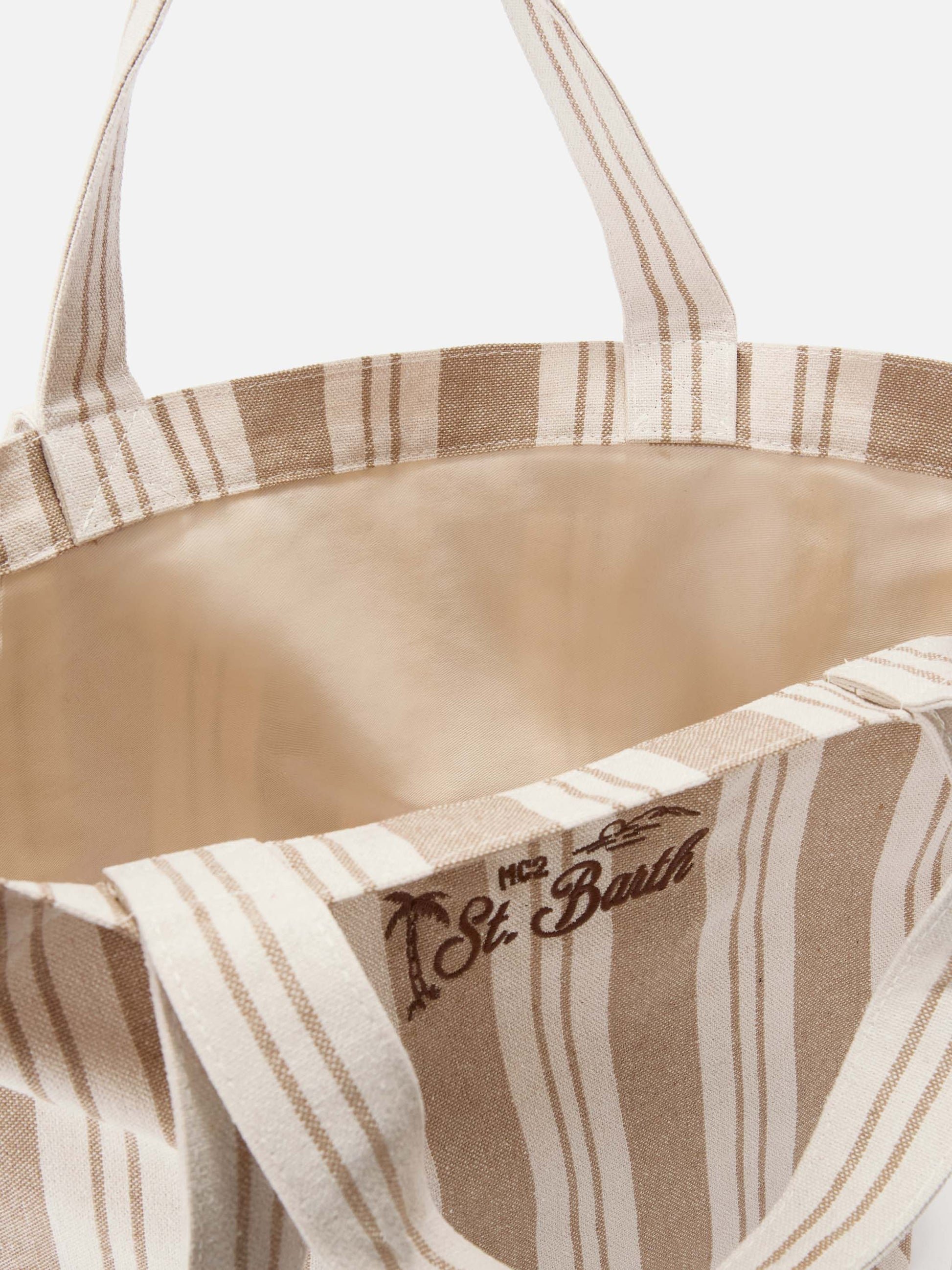Borsa tote Essential Beach in cotone a righe beige e bianche