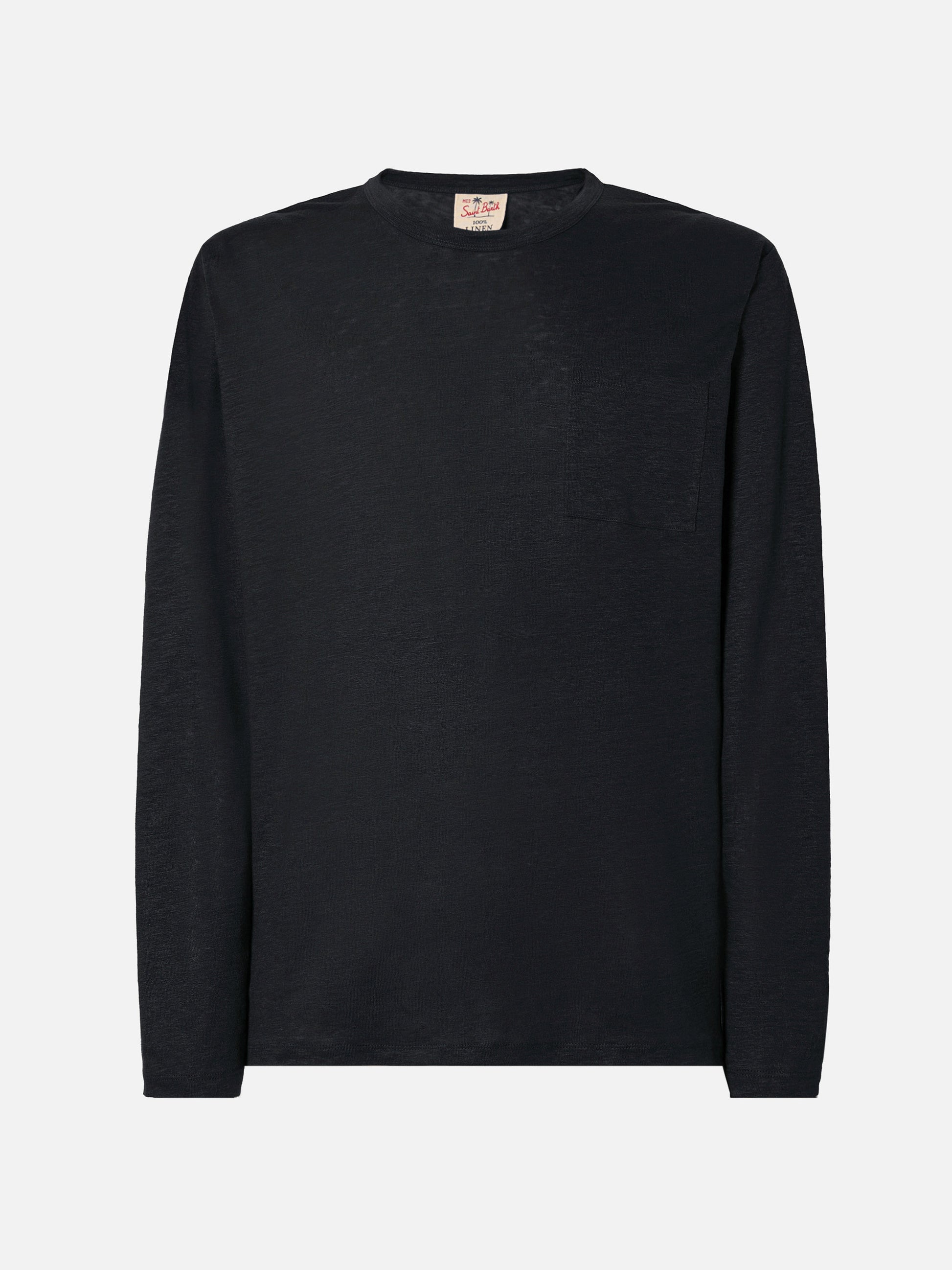 T-shirt da uomo in jersey di lino nera Ecstasea con taschino