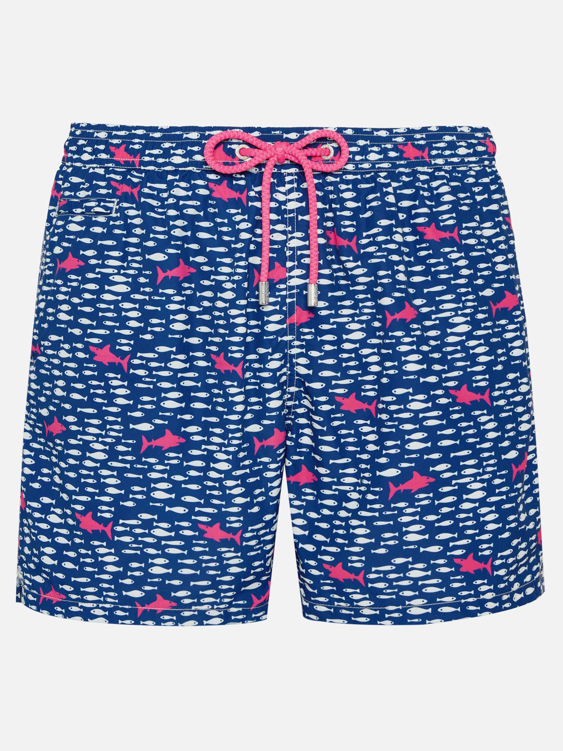 Costume da bagno da uomo in tessuto leggero con stampa pesci e squali