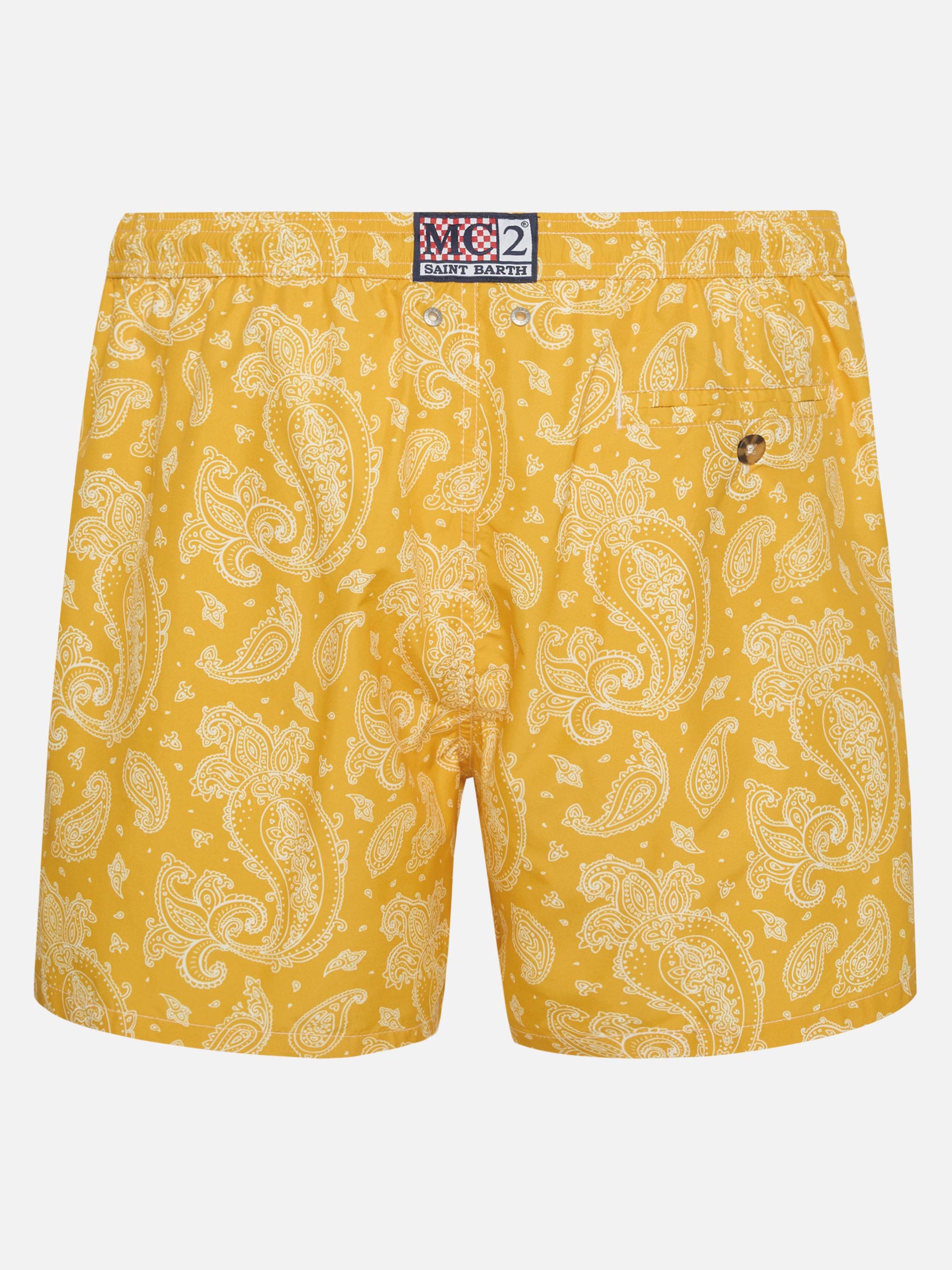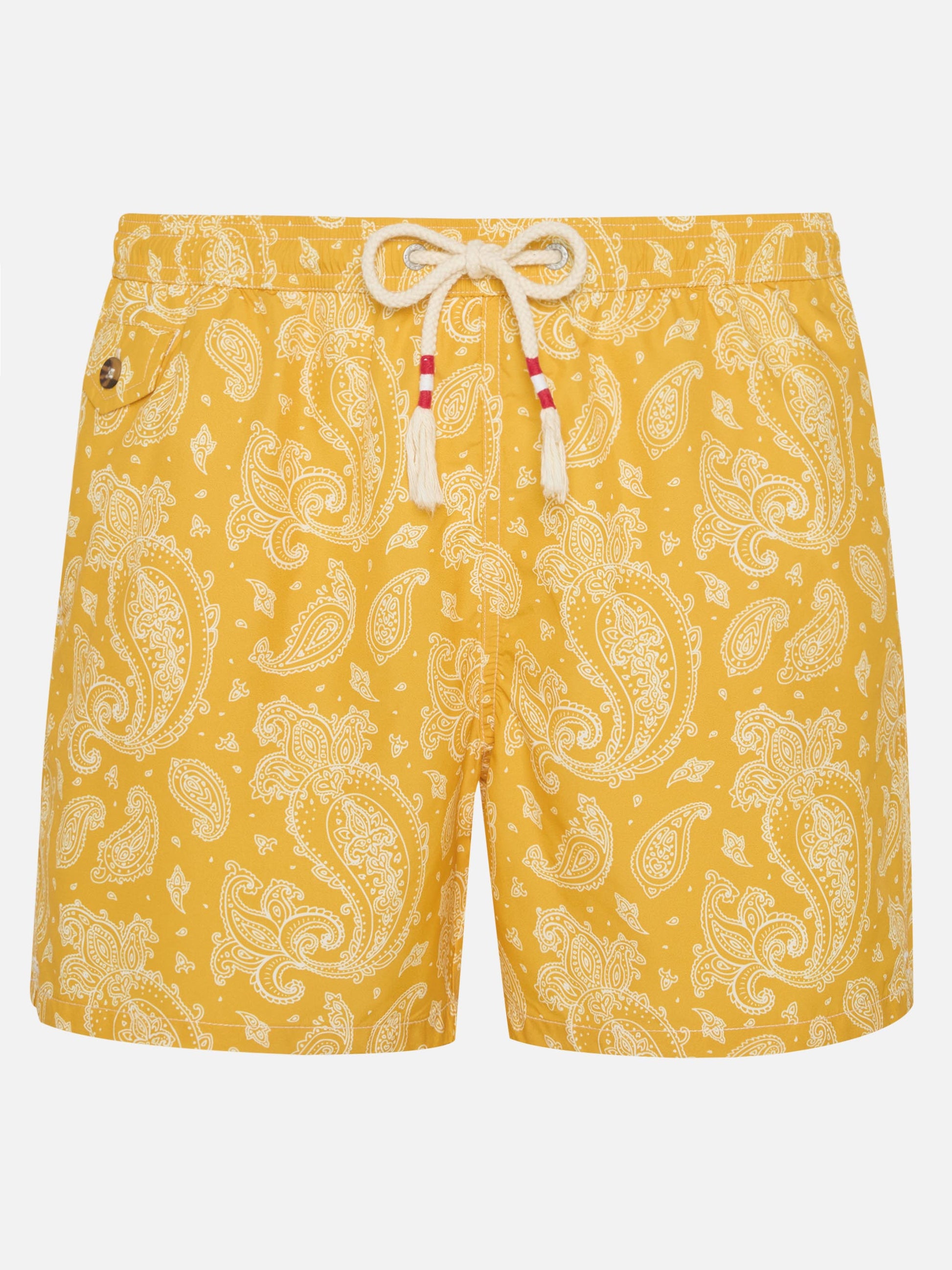 Costume da bagno da uomo in tessuto leggero con stampa paisley ocra