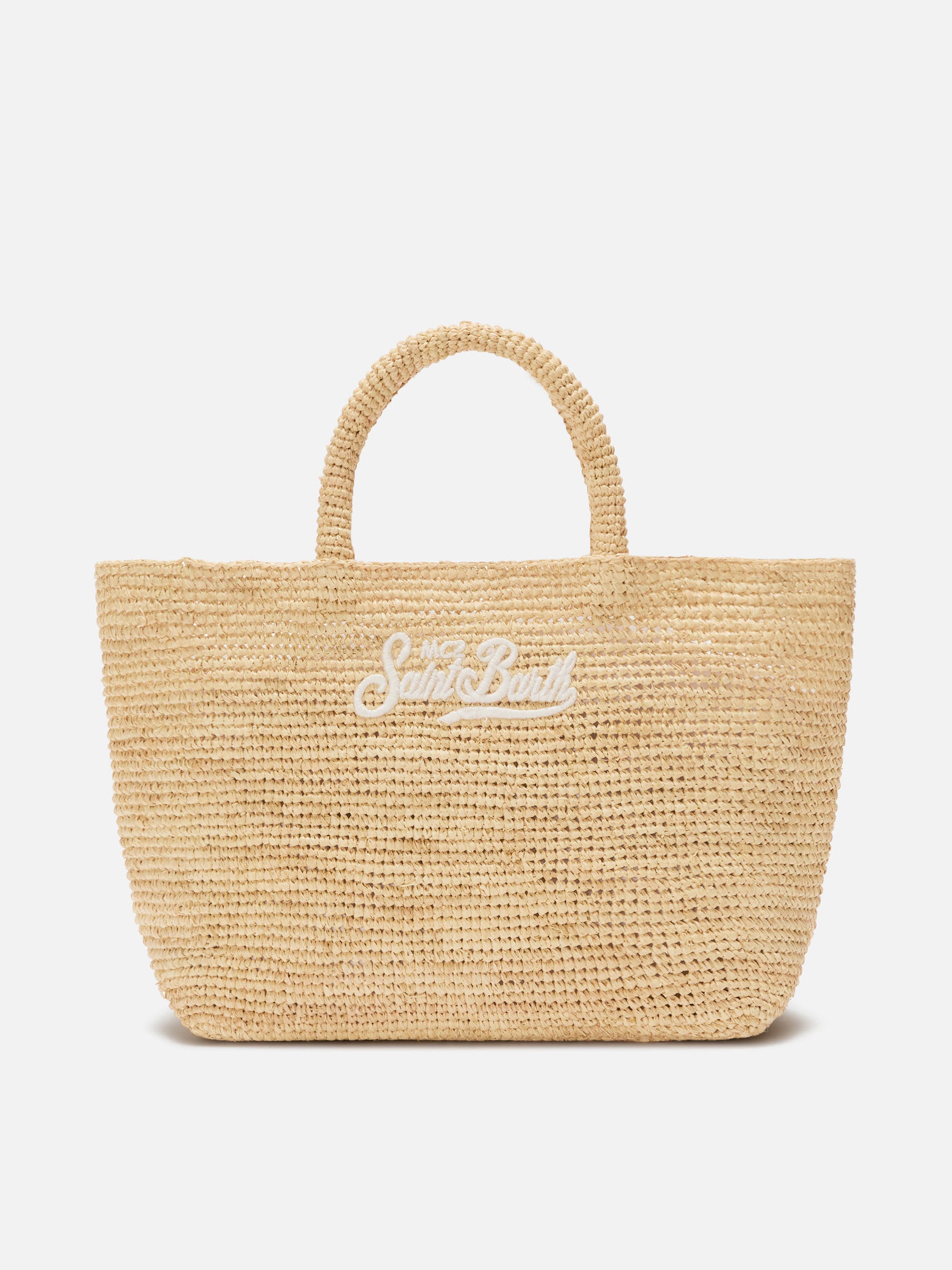 Borsa Beach medium in raffia con logo ricamato