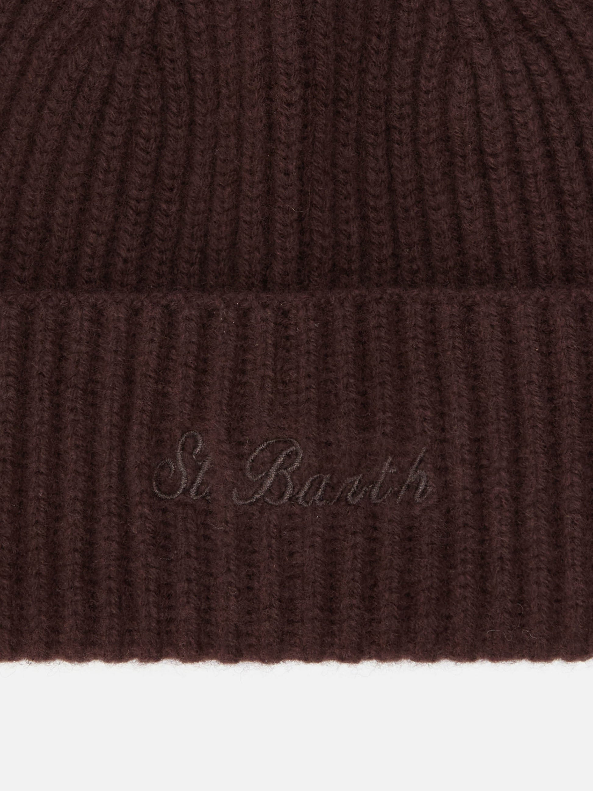 Berretto Moss in maglia marrone a coste con ricamo St. Barth