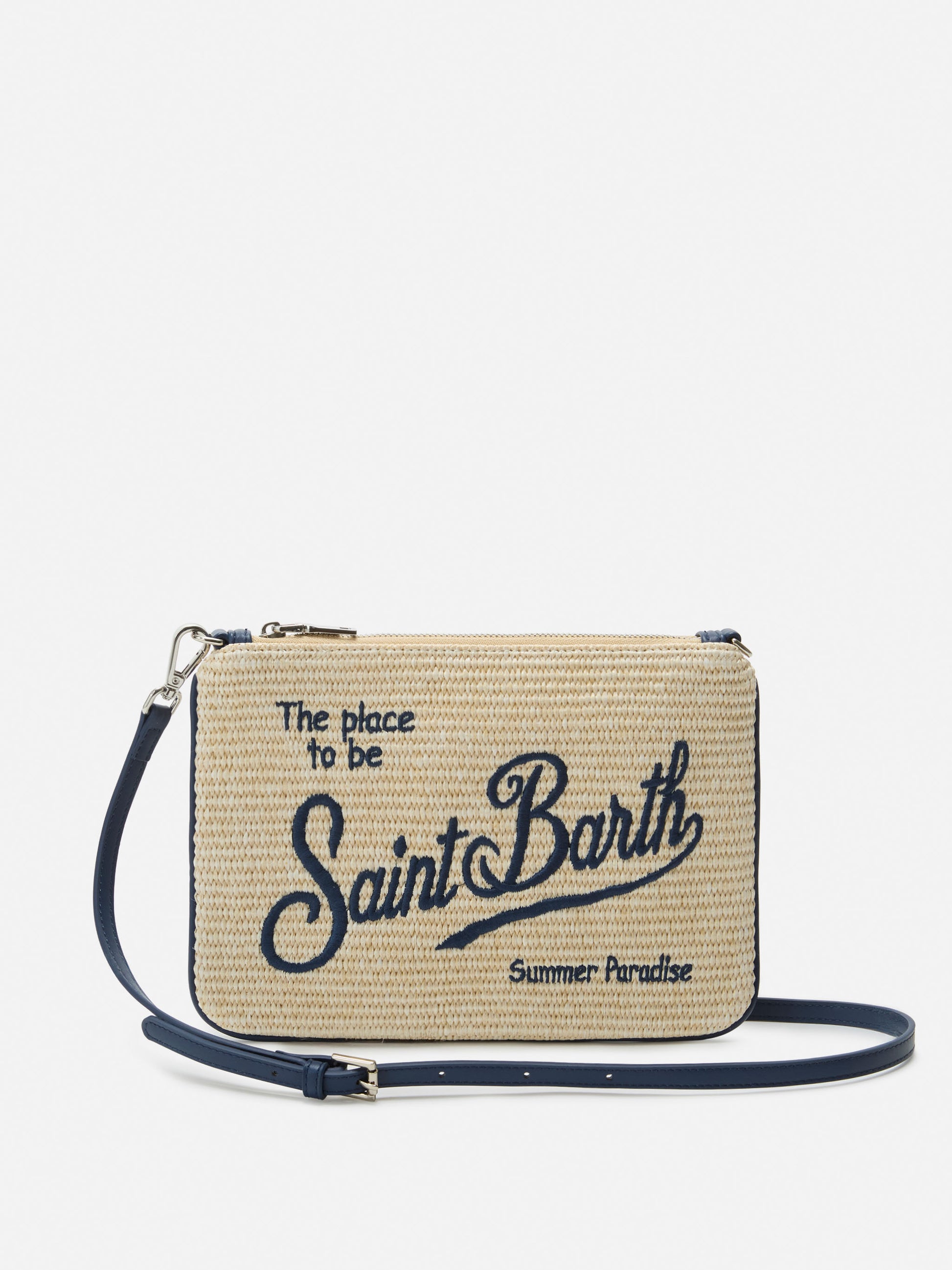Pochette Parisienne effetto paglia con logo ricamato