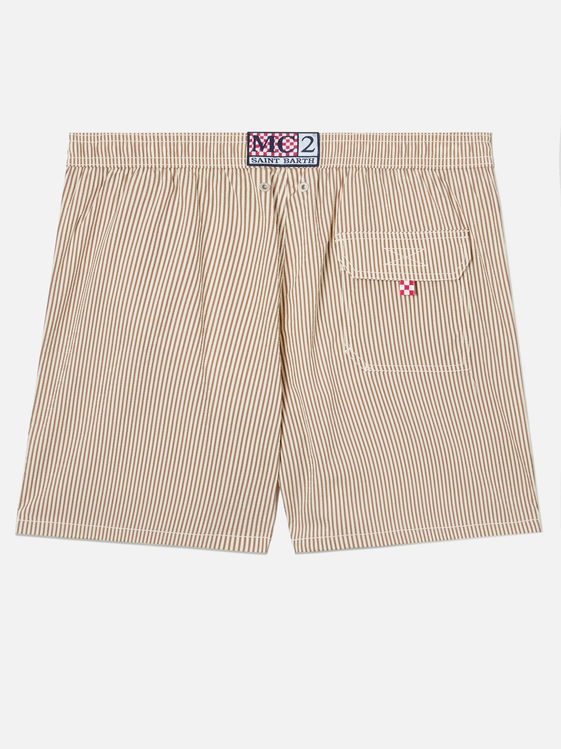 https://it.mc2saintbarth.com/it/products/patmos-seersucker-striped-swim-shorts-in-brown-and-white10775377740122Costume mare Patmos in seersucker rigato marrone e bianco119,00https:files/UID_PATM00101712L-MAN-SWIMSHORT-BROWN-MC2-MC2_1.jpghttps:files/UID_PATM00101712L-MAN-SWIMSHORT-BROWN-MC2-MC2_1.jpgEUROutOfStockSWIMSHORT650948215130All Products - Only Man649134276954AVADA - Best Sellers635400520026Man embroidered swim shorts628483424602Patmos man swim shorts603845984602Seersucker Uomo603371077978Tutti i costumi da bagno288251543736Uomo - Vedi Tutti i Costumi da Bagno654689960282UpSelling_Man_Swimshorts278956736696Vedi tutti i costumi con stampa microIl costume mare Patmos è realizzato in tessuto seersucker leggero e traspirante, pensato per offrire comfort e libertà di movimento durante l’utilizzo. La fantasia a righe definisce il design con un’estetica fresca e distintiva, arricchita dal ricamo logo sulla gamba. La lunghezza media e la vita elasticizzata con coulisse regolabile assicurano una vestibilità regular e confortevole. Il modello presenta tasche laterali a filetto, tasca laterale interna con zip e tasca posteriore con patella e chiusura velcro con passaggio per drenaggio dell’acqua. La retina interna elasticizzata antibatterica completa il design garantendo comfort e traspirabilità.