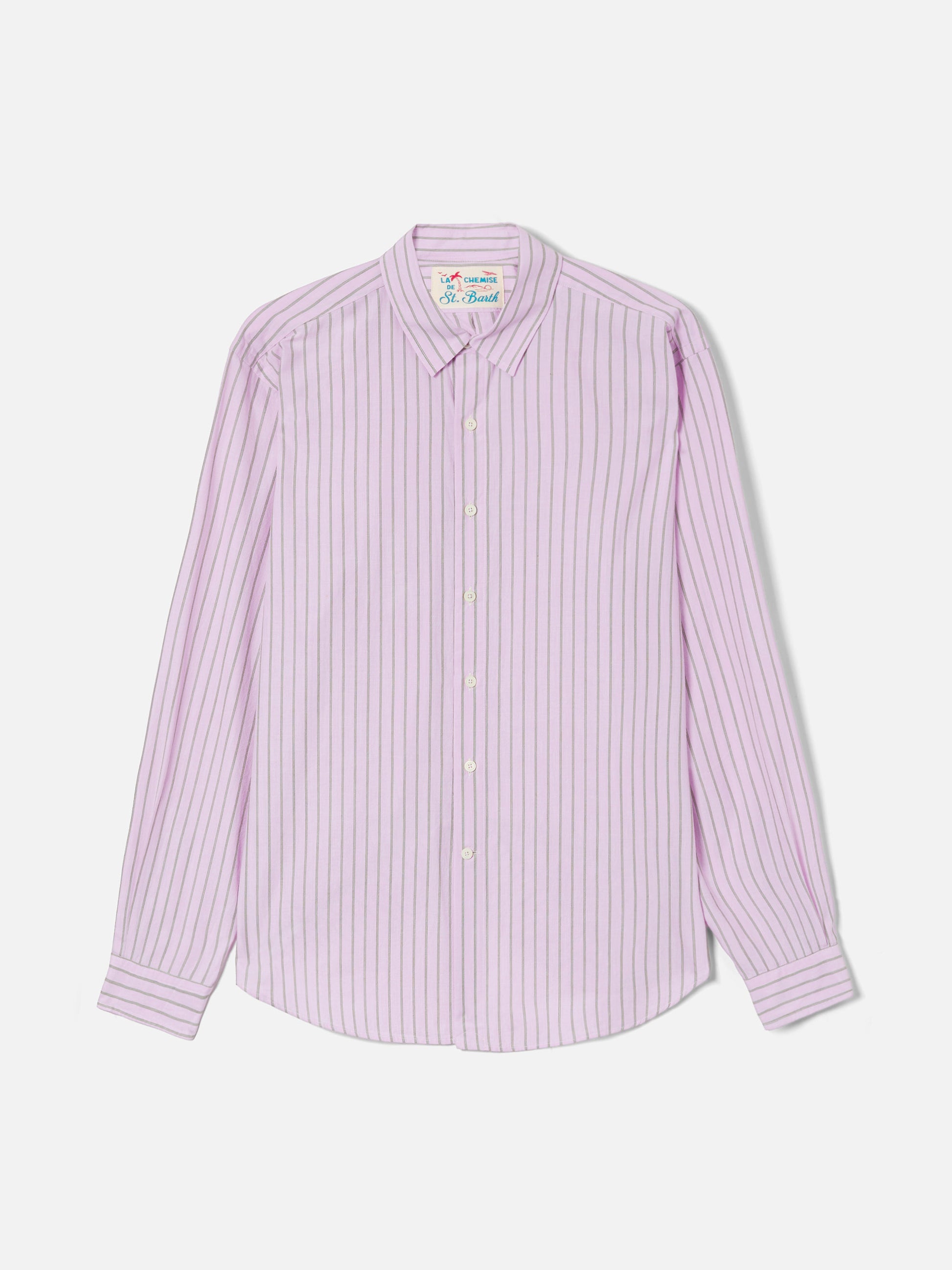 https://it.mc2saintbarth.com/it/products/pink-striped-levanzo-shirt-in-pure-cotton10780335374682Camicia Levanzo in cotone a righe rosa169,00https:files/UID_LVZ000201907L-MAN-SHIRT-PINK-MC2-MC2_2.jpghttps:files/UID_LVZ000201907L-MAN-SHIRT-PINK-MC2-MC2_2.jpgEURInStockSHIRT650948215130All Products - Only Man649134276954AVADA - Best Sellers280529961144Camicie Uomo674138194266Camicie Uomo674126365018Man striped patterns654689829210UpSelling_Man_ShirtLa camicia Levanzo è realizzata in puro cotone, progettato per offrire comfort e leggerezza. Il design a righe rosa definisce il capo con un’estetica grafica essenziale. Il modello presenta collo classico e abbottonatura frontale con bottoni logati effetto madreperla. Il capo è completato da un’etichetta jacquard logata applicata sul fondo. La linea oversize è progettata per offrire una vestibilità comoda e rilassata.