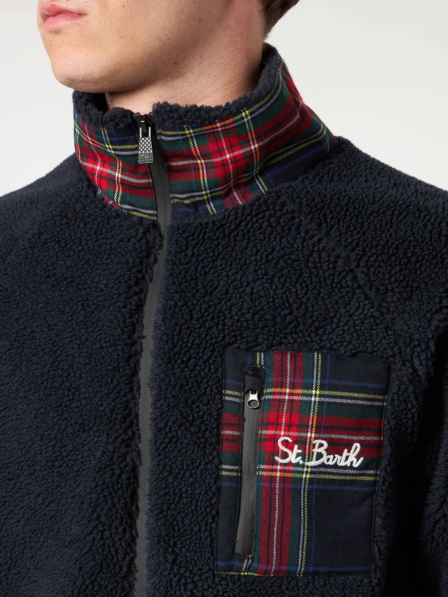 Giubbino in sherpa con taschino e ricamo St. Barth