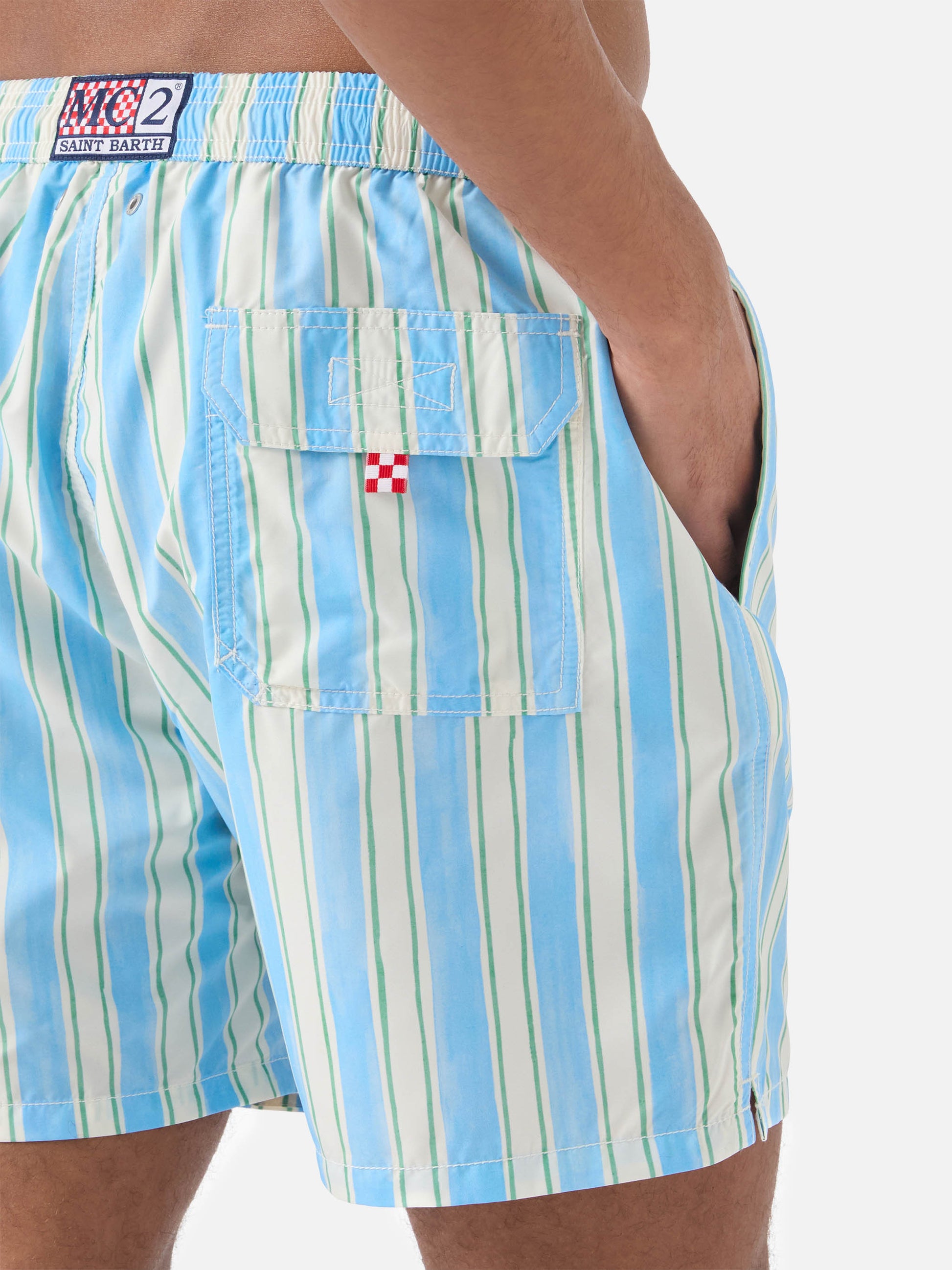 https://it.mc2saintbarth.com/it/products/syros-swim-shorts-with-light-blue-striped-pattern-and-logo-embroidery10775379771738Costume mare Syros a righe azzurre con ricamo logo119,00https:files/UID_SYR000100930L-MAN-SWIMSHORT-WHITE-MC2-MC2_1.jpghttps:files/UID_SYR000100930L-MAN-SWIMSHORT-WHITE-MC2-MC2_1.jpgEUROutOfStockSWIMSHORT650948215130All Products - Only Man649134276954AVADA - Best Sellers635400520026Costumi da uomo ricamati288793231544Donna - Vedi Tutti i Costumi da Bagno672324452698Novità - Uomo626723225946Tessuto Quick Dry – Uomo603371077978Tutti i costumi da bagno654689960282UpSelling_Man_Swimshorts279223304376Vedi tutti i costumi con stampa macroIl costume mare Syros è realizzato in tessuto traspirante quick-dry progettato per garantire comfort e libertà di movimento durante l’utilizzo. La fantasia a righe nei toni dell’azzurro, bianco e verde dona al modello un’estetica fresca e luminosa, mentre il ricamo logo aggiunge un dettaglio distintivo. La vita elasticizzata con coulisse consente di regolare facilmente la vestibilità, mentre la struttura funzionale con tasche laterali, tasca aggiuntiva con zip, taschino interno e tasca posteriore con patella e chiusura velcro assicura praticità. La retina interna elasticizzata antibatterica garantisce comfort e supporto. La lunghezza media e la vestibilità regular completano il modello, parte della capsule famiglia.